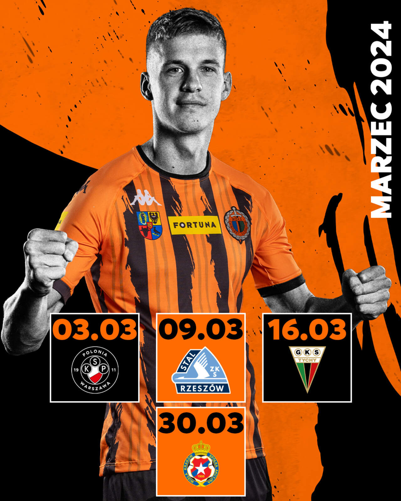 Marzec w Chrobrym Pomimo jednego weekendu wolnego z uwagi na przerwę reprezentacyjną, w marcu czekają nas ciekawe mecze. Ten miesiąc zaczynamy od Warszawy, a skończymy na Wiśle Kraków. 01-03-2024 08:22 autor: ŁJ Marzec w Chrobrym: 03.03.2024 (ND.), GODZ. 15:00: Polonia Warszawa - Chrobry Głogów 09.03.2024 (SB.), GODZ. 15:00: Chrobry Głogów - Stal Rzeszów 16.03.2024 (SB.), GODZ. 15:00: GKS Tychy - Chrobry Głogów 30.03.2024, GODZ. --.--: Wisła Kraków - Chrobry Głogów* *dokładny termin meczu nie został jeszcze wyznaczony przez Departament Rozgrywek PZPN