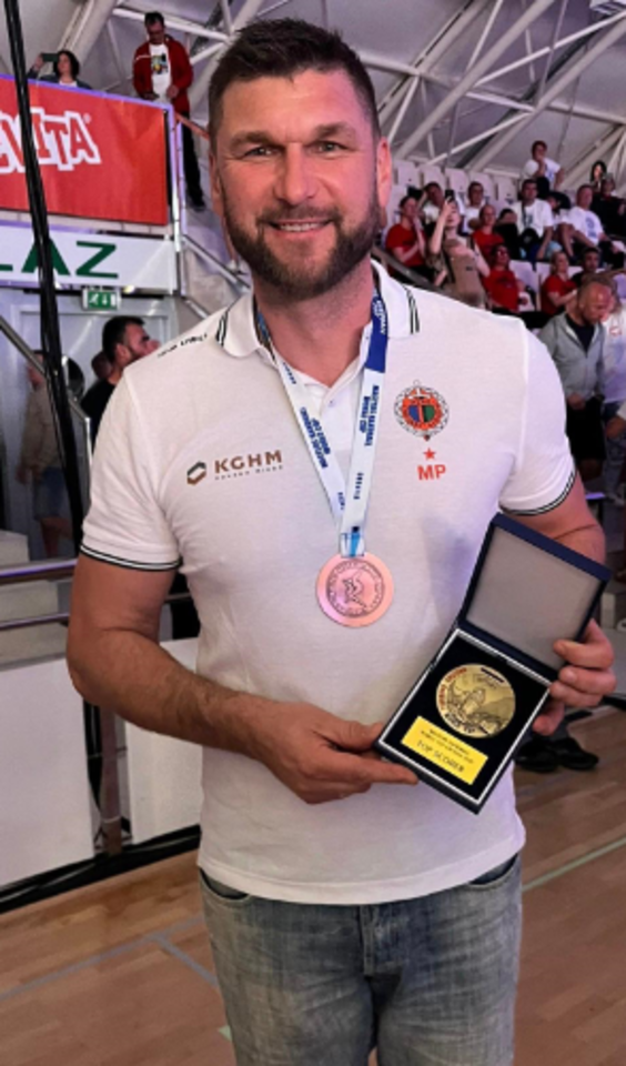 "Spełniliśmy marzenia" Występujący pod szyldem Chrobrego oldboje piłki ręcznej – Handball Masters z medalem mistrzostw świata, które odbyły się w Chorwacji! Teraz dzielą się z nami tą medalową przygodą, więc nie pozostaje nam nic innego, jak zachęcić do lektury. 27-05-2025 12:43 autor: ŁJ W zeszłym roku zakończyliśmy Puchar Świata na 4 miejscu, przegrywając brąz w rzutach karnych. Tym razem chcieliśmy zrobić wszystko, żeby wrócić do Głogowa z medalami na szyi. Do Chorwacji wyruszyliśmy w bojowych nastrojach. Pierwszy cel do wykonania: awans z grupy. Pokonaliśmy zespoły ze Słowacji i Węgier. Minimalnie ulegliśmy mocnej fizycznie drużynie z Litwy i z drugiego miejsca awansowaliśmy do strefy medalowej. W półfinale czekali na nas Canarinhos. Stoczyliśmy z Brazylijczykami bardzo wyrównany bój. W regulaminowym czasie był remis. Niestety to przeciwnik zachował więcej sił, wygrał w karnych i awansował do finału. Klątwa siódemek? Oby nie. Przed nami mecz o trzecie miejsce z ostro grającymi Czechami. Twardy męski Handball, sporo kar, kłótnie z sędziami. Normalka w handballu 😊 Na szczęście pokazaliśmy jakość i ostatecznie brązowe medale zawisły na naszych szyjach. Spełniliśmy marzenia. Grzesiek Piotrowski jak za dawnych dobrych lat wielokrotnie dziurawił siatkę przeciwników i otrzymał tytuł najlepszego strzelca kategorii 45 +. Brawo Grzegorz ! Po raz kolejny wzięliśmy udział, nie ma co ukrywać – w święcie piłki ręcznej. Grubo ponad 1000 osób z całego świata, prawie ze wszystkich kontynentów. Dużo twardej walki, jeszcze więcej uśmiechu i radości z przebywania w gronie ludzi kochających sport. Głogów pokazał się z bardzo dobrej strony. Możemy być z siebie dumni. I nie ukrywamy – apetyty mamy większe niż brąz. Zatem do pracy panowie 😊 Skład drużyny: Bramkarze: Przemek Pitoń, Jacek Głów Zawodnicy z pola: Marcin Gośko, Mariusz Witczak, Grzegorz Badecki, Sebastian Szymański, Dominik Jastrzębski, Marcin Krotla, Tomasz Kalinowski, Rafał Walczak, Grzegorz Piotrowski, Łukasz Darowski, Marcin Burda, Krzysztof Przybysz, Marek Becelewski, Andrzej Sowa. Trenerzy: Marek Wojciechowski, Józef Kaminiarz (trenerze zbieraj siły i następnym razem widzimy się w Chorwacji) Łukasz Darowski