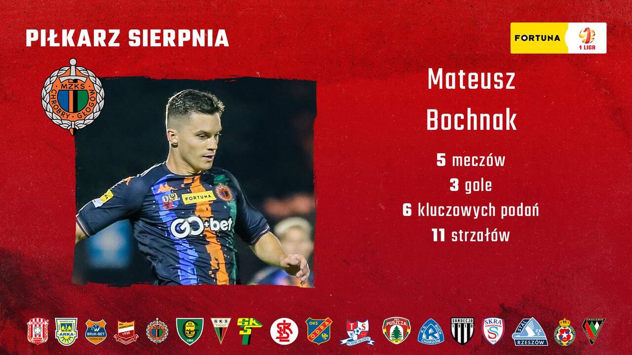 Mateusz Bochnak z nominacją na Piłkarza Sierpnia Mateusz Bochnak wśród pięciu najlepszych piłkarzy pierwszoligowych boisk w sierpnia. Teraz trwa głosowanie na tego najlepszego. 30-08-2022 11:45 autor: ŁJ Fortuna 1 Liga kontynuuje w nowym sezonie plebiscyt na Piłkarza Miesiąca, który wyłoniony zostanie w drodze głosowania kibiców i panelu ekspertów. Laureat nagrody za sierpień będzie mógł wskazać cel charytatywny, na który sponsor tytularny rozgrywek firma Fortuna przekaże 10 000 zł. Wśród nominowanych znaleźli się piłkarze Bruk-Bet Termaliki, Chrobrego Głogów, Arki Gdynia, Wisły Kraków i ŁKS Łódź. O miano Piłkarza Sierpnia powalczą: Wiktor Biedrzycki, Bruk-Bet Termalica Mateusz Bochnak, Chrobry Głogów Kacper Krzepisz, Arka Gdynia Mateusz Młyński, Wisła Kraków Pirulo, ŁKS Łódź Kibice mogą oddać głos na swojego faworyta do środy (31 sierpnia, 12:00) na oficjalnej stronie Fortuna 1 Ligi na portalu Facebook (www.facebook.com/1liga.org). W tym czasie swoich kandydatów wskaże też panel ekspertów, w skład którego wchodzą przedstawiciele wszystkich 18 klubów Fortuna 1 Ligi, partnera telewizyjnego rozgrywek Telewizji Polsat, sponsora tytularnego firmy Fortuna oraz Pierwszej Ligi Piłkarskiej. Zwycięzca głosowania kibiców otrzyma 4 punkty, zaś wskazanie każdej z organizacji w panelu ekspertów warte będzie 1 punkt. Piłkarzem Sierpnia zostanie zawodnik, który uzyska najwięcej punktów spośród nominowanych. Głosowanie na Piłkarza Miesiąca będzie uzupełnieniem innych akcji CSR-owych zainicjowanych przez Fortunę: #FortunaGdyPełnaTrybuna i #FortunaZaGole, które zapisały się w świadomości kibiców Fortuna 1 Ligi i były z powodzeniem realizowane w poprzednich sezonach. PRZEJDŹ DO GŁOSOWANIA