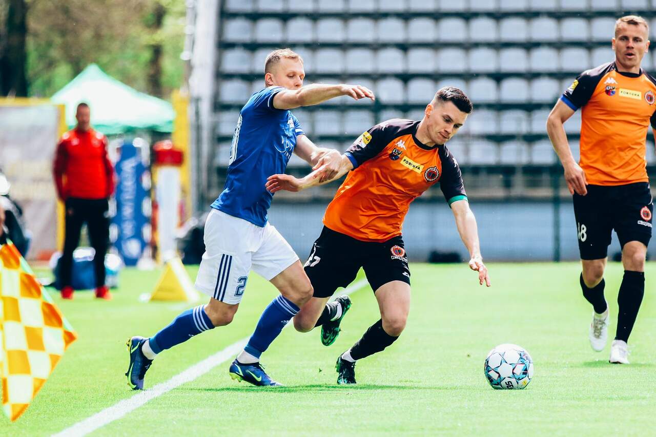 ZADECYDOWAŁA 65 MINUTA Jednobramkowe zwycięstwo Miedzi w 58. derbach. Zadecydowała druga połowa. 30-04-2022 02:37 autor: ŁJ Derby tym razem dla Miedzi. Legniczanie wygrali u siebie 1:0 po jedynym golu w 65 minucie. Chrobry nieźle wszedł w ten mecz, bo to on jako pierwszy zagrażał bramce rywali. Dwie dobre akcje kończono bliżej prawej strony, najpierw niebezpiecznie uderzał Mateusz Bochnak, a po nim jeszcze groźniej Michał Rzuchowski. Po tym drugim strzale świetną interwencją popisał się Paweł Lenarcik, przerzucając zmierzającą pod poprzeczkę futbolówkę. Chrobry miał z tego tylko rzut rożny, ale tym postraszył gospodarzy. Miedź zyskała większą przewagę w kreowaniu akcji dopiero w końcowych minutach, mając dobre, choć niecelne uderzenie Maxime Domingueza. Po 45 minutach był bezbramkowy remis. W drugiej połowie aż takiej zaciętości nie było. Gospodarze przeważali, ale mimo zagrożenia za sprawą Chucy, Zapolnika czy Domingueza nie mogli udokumentować tego celnym trafieniem. Niestety, w 65 minucie Chrobry stracił piłkę na własnej połowie. Michał Michalec przegrał pojedynek z rywalem, a Patryk Makuch dopełnił formalności. Sytuację próbowali jeszcze ratować wracający Michalec z Rafałem Leszczyńskim, lecz piłka zdołała wpaść do środka. Głogowianie starali się jeszcze doprowadzić do wyrównania, ale nie byli w stanie mocno zagrozić bramce strzeżonej przez Pawła Lenarcika. To miejscowi byli bliżsi kolejnego gola, gdy w 82 minucie strzał będącego w dogodnej pozycji Chucy obronił Rafał Leszczyński. Ostatecznie Miedź została z kompletem punktów. Następny mecz, przedostatni na stadionie w Głogowie, w niedzielę 8 maja. Tego dnia o godz. 18.00 rozpocznie się spotkanie z Podbeskidziem Bielsko-Biała.