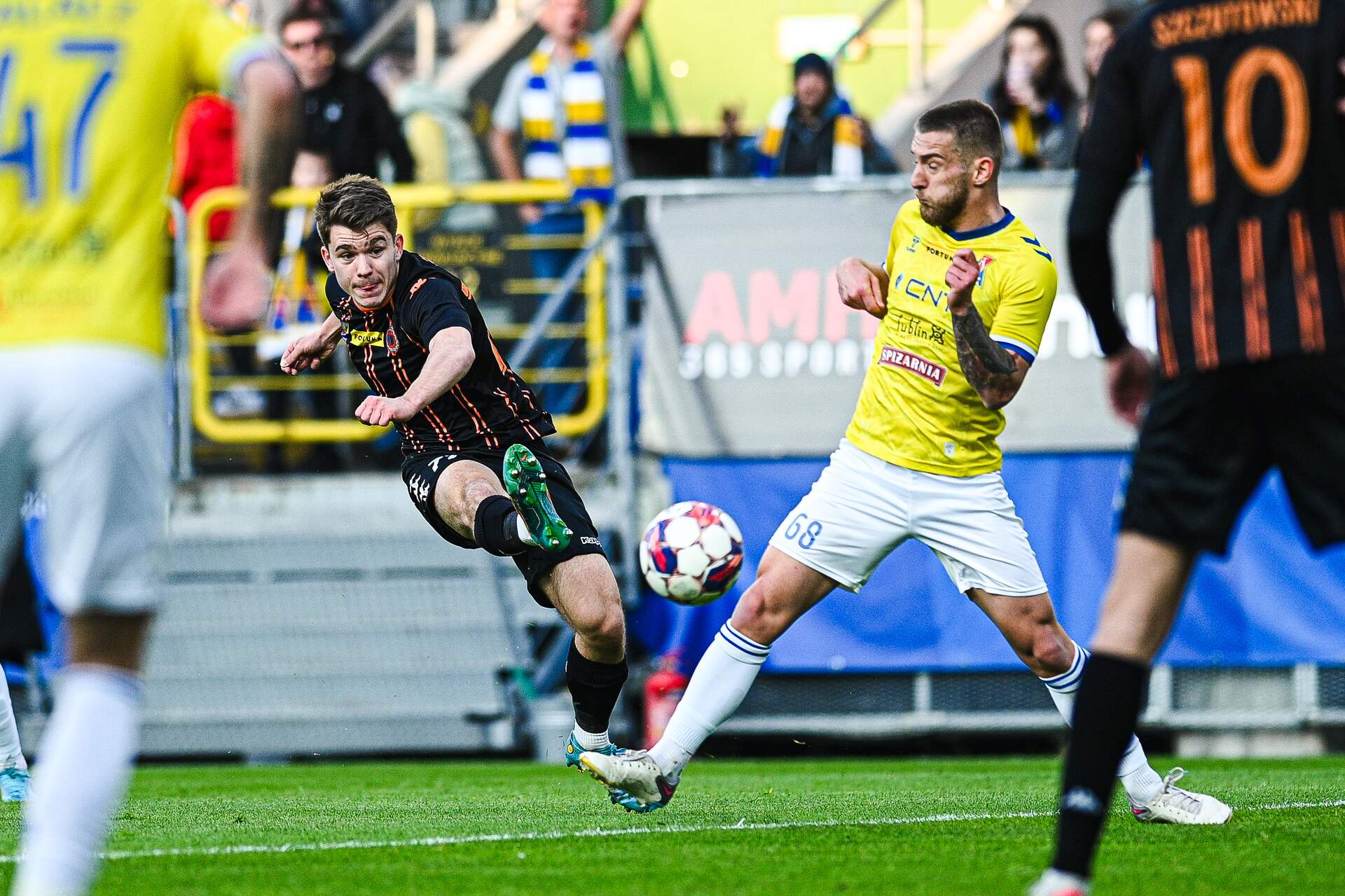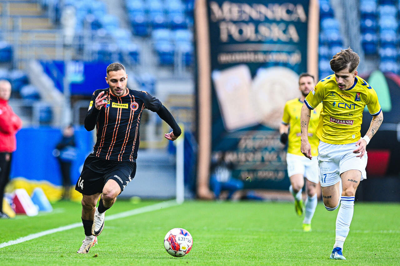 Daleko, ciężko, ale z punktem To był bardzo ciężki mecz, ale Chrobry pomimo trudności zdołał opanować sytuację i po bramce Pawła Tupaja wraca z Lublina z remisem 1:1, a co za tym idzie wartościowym punktem. 25-04-2024 07:51 autor: Mecz zaczął się dla Chrobrego bardzo źle, bo od gola gospodarzy. Już w 3 minucie Damiana Węglarza głową po wrzutce z prawej strony pokonał Samuel Mraz. To była pierwsza okazja lublinian, ale niejedyna w pierwszych minutach. Czuli się swobodnie, często gościli w polu karnym Pomarańczowo-Czarnych, strzelali z rzutu wolnego, próbowali kończyć akcję efektownym strzałem z piętki, lecz tym razem głogowski golkiper skutecznie interweniował. To wszystko działo się w pierwszym kwadransie, na koniec którego wreszcie z akcją ruszył Chrobry. Sam do przodu popędził Mateusz Ozimek i już z pola karnego zdecydował się na uderzenie, które jednak było niecelne. Tylko że w 22 minucie znów było bardzo niebezpiecznie i znów po dograniu z prawej strony główkował Mraz. Świetna obrona Damiana Węglarza zapobiegła dwubramkowemu prowadzeniu rywali już na tym etapie. Mimo tych trudów głogowianie mogli odpowiedzieć. Po 30 minucie Albert Zarówny skutecznie przeszkodził Łukaszowi Budziłkowi w złapaniu futbolówki i tym umożliwił uderzenie Mateuszowi Ozimkowi. Gdyby nie wybijający piłkę zawodnik Motoru, byłoby 1:1. Utrzymało się jednak 1:0 dla miejscowych. Chrobry przez przerwę musiał uspokoić swoją grę i spróbować zaatakować po zmianie stron. Druga cześć zaczęła się od kilku niecelnych strzałów po obu stronach, Roberta Mandrysza czy Michała Króla. W 56 minucie trener Piotr Plewnia zareagował i wprowadził do gry Mikołaja Lebedyńskiego z Szymonem Bartlewiczem. Ten drugi dosłownie po chwili mógł wpisać się na listę strzelców, ale po uderzeniu z kilkunastu metrów piłkę poza linię końcową wybił Łukasz Budziłek. Jeszcze lepszą interwencję zaliczył w 60 minucie Damian Węglarz, gdy akcję z dograniem z prawej strony boiska zamykał Samuel Mraz. A skoro cios za cios, to teraz Chrobry. Potwierdziło się, że ożywienie wniósł Szymon Bartlewicz, bo w 63 minucie to on dośrodkowywał na dalszy słupek, skąd akcję wykończył Paweł Tupaj i mieliśmy remis. Po tym gra się uspokoiła i żadna ze stron nie było aż tak blisko, aby przepchać to spotkanie z korzyścią dla siebie. Ostatecznie można powiedzieć, że większą korzyść odniósł Chrobry, bo miał w Lublinie naprawdę ciężko, a mimo tego dopisuje do swojego konta punkt. Teraz czas na przyspieszone przygotowania do tego, co w poniedziałek, a tego dnia Chrobry o godz. 18.00 na swoim stadionie zagra z Wisłą Płock. Fot. 400mm.pl