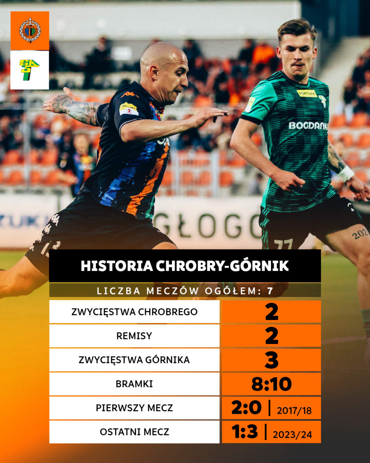Nasz rywal: Górnik Łęczna W poniedziałek naszym drugim w tym roku rywalem będzie Górnik Łęczna. Sprawdzamy, co słychać w szeregach rywala. 24-02-2024 11:15 autor: ŁJ Zestawienie sprzed rozpoczęcia 21 kolejki. Dobry początek roku Przed startem 21 kolejki Górnik był siódmy z jednopunktową stratą do strefy barażowej i pod tym względem ten sezon ma lepszy od poprzedniego, który zakończył na 12 pozycji. Wejście w rundę wiosenną może potwierdzać wyższe aspiracje, bo zespół z Łęcznej rozegrał już dwa spotkania i miał w nich mocnych rywali. Najpierw zremisował z Miedzią Legnica 0:0, a następnie pokonał GKS Tychy (czyli aktualnego lidera) 2:0. Pokonując tyszan, Górnik przerwał serię pięciu spotkań bez zdobytej bramki, co też potwierdza dobrą dyspozycję drużyny po okresie przygotowawczym. Statystyka podpowiada, że w poniedziałek o losach rywalizacji mogłaby przesądzić jedna bramka, a raczej na pewno nie będzie hokejowego wyniku. Oba zespoły mają po 20 zdobytych goli (mniejszym pod tym względem kontem dysponuje Znicz Pruszków), a dodatkowo Górnik to najlepsza ligowa defensywa (podobnie jak Lechia Gdańsk, ma tylko 18 straconych bramek). Trener rywali Do grudnia trenerem Górnika był Ireneusz Mamrot, jednak od początku roku drużynę prowadzi Pavol Stano ze Słowacji, były szkoleniowiec m.in. Wisły Płock, ale też znany z występów w Ekstraklasie z Koroną Kielce czy Jagiellonią Białystok. Stabilizacja kadry Górnik jest jednym z tych klubów, w których zimą zaszło bardzo niewiele zmian. Odszedł tylko jeden zawodnik, który jesienią i tak nie grał, a do zespołu dołączyło dwóch: Damian Warchoł oraz Enis Fazlagic. Warchoł był bez klubu, a Fazlagic przyszedł z Wisły Kraków, w której jesienią nie zagrał (choć w przeszłości występował z Wisłą w Ekstraklasie), więc te zmiany można uznać za śladowe, a stabilizację za wysoką. Najlepszym strzelcem Górnika jest Egzon Kryeziu (5 bramek), a do podstawy należą jeszcze m.in. Lukas Klemenz, Adam Deja, Damian Zbozień, Paweł Żyra czy Jonathan de Amo, czyli zawodnicy z przeszłością w najwyższej lidze. Klubowe powiązania Jedynym zawodnikiem Górnika z przeszłością w Chrobrym jest Michał Pawlik (w tym sezonie 12/0). Więcej piłkarzy grających wcześniej w szeregach rywala jest po stronie Chrobrego - to Robert Mandrysz, Mikołaj Lebedyński i Szymon Lewkot, który w Górniku był jeszcze w ubiegłym sezonie i rozegrał w nim 25 meczów. Obsada sędziowska Sędzia główny: Szymon Łężny - Kluczbork Sędziowie asystenci: Marcin Czerwiński, Jacek Babiarz Sędzia techniczny: Paweł Horożaniecki Sędziowie VAR: Kornel Paszkiewicz, Artur Aluszyk Gramy po raz ósmy Przed jesiennym meczem w Łęcznej, bilans bezpośrednich pojedynków był bardzo wyrównany, nawet pod względem bramkowym. Wtedy jednak wygrywający 2:0 Górnik przechylił szalę na swoją korzyść. Przed nami 8. spotkanie z Górnikiem. Wszystkie odbyły się w ramach pierwszoligowych rozgrywek. Liczba meczów Chrobry – Górnik: 7 Zwycięstw Chrobrego: 2 Remisów: 2 Zwycięstw Górnika: 3 Bramki Chrobry – Górnik: 8:10
