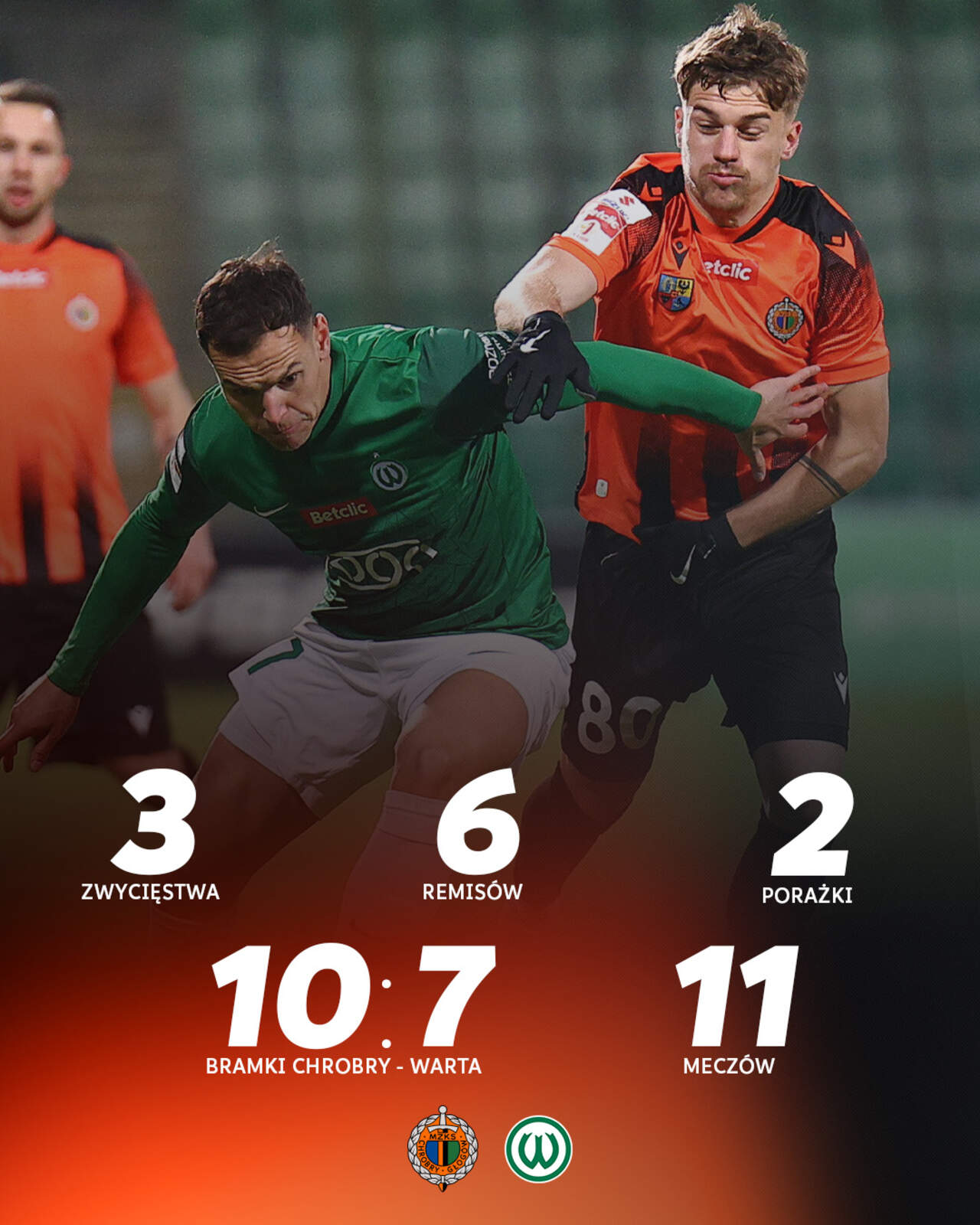 Nasz rywal: Warta Poznań To jeden z trzech ostatnich meczów sezonu i być może najważniejszy, bo z udziałem dwóch zespołów walczących o utrzymanie. W niedzielę Chrobry podejmie będącą w dużym kryzysie, ale wciąż mającą nadzieję Wartę Poznań. 10-05-2025 10:00 autor: ŁJ Trudy wiosny Warta pozostaje jedynym zespołem, który w tym rokue nie odniósł żadnego zwycięstwa. W dodatku, kryzys zespołu pogłębił się w ostatnich tygodniach – drużyna zanotowała sześć porażek z rzędu. Skutkiem tego jest ostatnie miejsce w tabeli, choć wciąż istnieje szansa na utrzymanie. Przypomnijmy, że Warta przez cztery lata rywalizowała w Ekstraklasie, a spadła z niej dopiero w ostatniej kolejce sezonu 2023/24, mimo że wcześniej ani razu nie znajdowała się w strefie spadkowej. Tydzień temu Warta uległa Ruchowi Chorzów 0:2. Obecnie traci pięć punktów do Chrobrego i musi wygrać, aby zachować nadzieję na utrzymanie w lidze. Trener rywali: Ryszard Tarasiewicz Od marca Wartą kieruje doskonale znany szkoleniowiec Ryszard Tarasiewicz. 63-letni trener ma na swoim koncie awanse do Ekstraklasy z takimi zespołami jak Śląsk Wrocław, Pogoń Szczecin i Zawisza Bydgoszcz, z którym dodatkowo zdobył Puchar Polski. W ostatnich latach pracował głównie na poziomie pierwszej i drugiej ligi, m.in. w GKS-ie Tychy, Arce Gdynia oraz Kotwicy Kołobrzeg, którą przejmując w kwietniu wprowadził na zaplecze Ekstraklasy. Misja w Poznaniu wydaje się jednak trudniejszym wyzwaniem. - Nie dopuszczamy do wielu sytuacji, nasze formacje dobrze współpracują, w ostatnich meczach oddaliśmy ponad 50 strzałów. Nie chcę spadać - powiedział Ryszard Tarasiewicz. Kadra rywali Podstawową część kadry Warty tworzą tacy zawodnicy jak Jurij Tkaczuk, były piłkarz Chrobrego – Jakub Kiełb, Maciej Firlej, Kacper Michalski, Bartosz Szeliga oraz Jakub Bartkowski. Bartkowski, z ponad 200 występami w Ekstraklasie, jest najbardziej doświadczonym pod tym względem zawodnikiem w drużynie. Z kolei najskuteczniejszym strzelcem jest Michalski z czterema golami na koncie. Kiełb rozgrywa już dziewiąty sezon w barwach Warty, z którą przeszedł drogę od drugiej ligi do Ekstraklasy. Z pewnością nie chciałby, aby historia zatoczyła koło i jego zespół ponownie znalazł się w niższej klasie rozgrywkowej. W ostatnich tygodniach nie miał jednak na to dużego wpływu, bo z uwagi na kontuzję po raz ostatni wystąpił 11 kwietnia, a w takich trudnych momentach obecność mocno związanych z klubem piłkarzy może być znacząca. 03-05-2025 Chrobry Głogów - Warta Poznań: bilety Trwa sprzedaż biletów na przedostatni w tym sezonie domowy mecz Chrobrego - w niedzielę 11 maja o godz. 12.00 Pomarańczowo-Czarni podejmą Wartę Poznań. Klubowe powiązania W przeszłości zawodnikami Warty Poznań byli Mateusz Lewandowski oraz Jakub Kuzdra, który awansował z zespołem do Ekstraklasy i grał w niej w barwach tego klubu. Z kolei obecnym zpiłkarzem Warty, który w przeszłości reprezentował Chrobrego Głogów, jest Jakub Kiełb. W Głogowie spędził sezon 2014/2015, po czym przeniósł się do Jaroty Jarocin. Od 2016 roku nieprzerwanie reprezentuje barwy poznańskiego klubu. W bieżącym sezonie rozegrał 27 meczów, w których zdobył jedną bramkę. Obsada sędziowska Sędzia główny: Łukasz Karski - Słupsk Sędziowie asystenci: Dawid Nitka, Artur Zakrzewski Sędzia techniczny: Paweł Horożaniecki Sędziowie VAR: Karol Arys, Filip Kaliszewski Po czwarte zwycięstwo Chrobry z Wartą rywalizował już w latach 90-tych, a w tym tysiącleciu - w drugiej i pierwszej lidze. W ostatnim meczu z rundy jesiennej Warta wygrała u siebie 1:0, jednak więcej zwycięstw ma na swoim koncie Chrobry, który trzy spotkania zakończył na swoją korzyść. Liczba meczów w lidze: 11 Zwycięstw Chrobrego: 3 Remisów: 6 Zwycięstw Warty: 2 Bramki Chrobry-Warta: 10:7