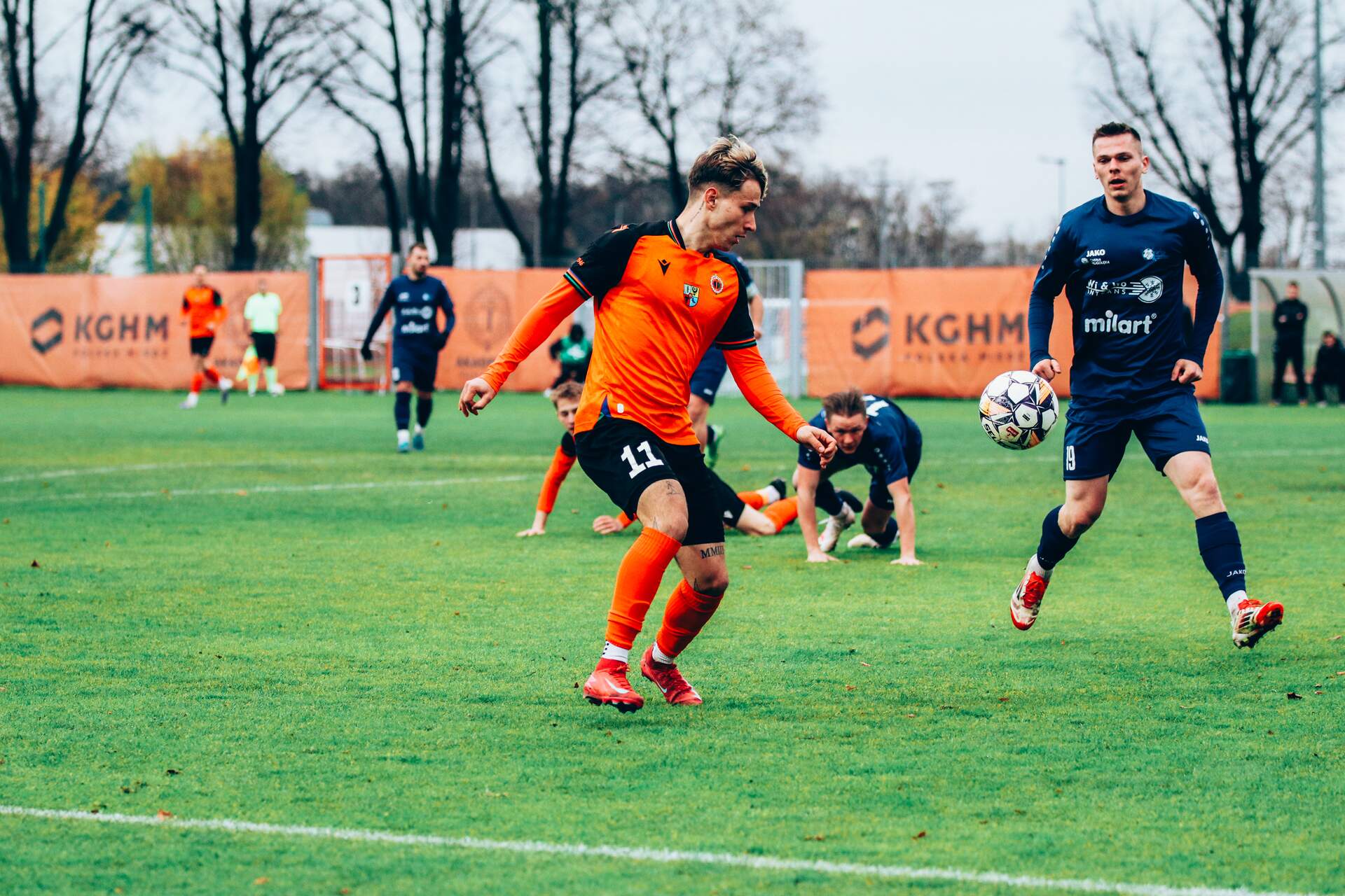 O miejsce w piątce. Chrobry II kończy rundę Chrobry II kończy rundę i ma szansę zrobić to w efektownym stylu. W niedzielę o godz. 11.00 na stadionie w Głogowie zmierzy się z Moto-Jelczem Oława. 22-11-2025 12:37 autor: ŁJ Na sam koniec tegorocznych zmagań w Koleje Dolnośląskie 4 Lidze czeka nas bardzo ciekawie zapowiadający się pojedynek dwóch zespołów z czołówki. Chrobry II jest szósty z dorobkiem 31 punktów, natomiast Moto-Jelcz zajmuje czwarte miejsce i ma tylko dwa oczka więcej. Mecz Chrobrego II rozegrany zostanie na stadionie. Wejście dla kibiców będzie odbywać się wejściem głównym od strony ul. Wita Stwosza. Wstęp jest bezpłatny. Pomarańczowo-Czarni powalczą nie tylko o przeskoczenie oławian w tabeli, ale także o ósme ligowe zwycięstwo z rzędu (!) oraz – przy sprzyjających wynikach na innych boiskach – o możliwość zrównania się punktami z wiceliderem, którym obecnie jest Piast Żmigród z dorobkiem 34 punktów. Niedzielny rywal Chrobrego jest po trzech meczach bez wygranej. W ostatniej kolejce przegrał z liderem z Sułowa 0:1. Niedziela, 23 listopada 11.00 Chrobry II Głogów – Moto-Jelcz Oława (Koleje Dolnośląskie 4 Liga) Głogów, stadion