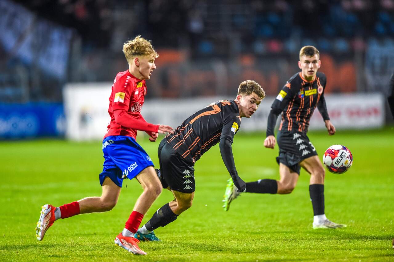 Opole nadal niezdobyte Po kilkudziesięciu latach sytuacja w wyjazdowych meczach z Odrą Opole się nie zmienia. Chrobry nadal bez punktów na jej stadionie. Gospodarze wygrywają 3:0. 20-04-2024 10:00 autor: ŁJ W pierwszych minutach Chrobry miał kilka stałych fragmentów gry, z których potrafi mocno zagrozić rywalowi, jednak tym razem tak się nie stało. Więcej zagrożenia było po drugiej stronie. W 14 minucie Jakub Antczak posłał piłkę nad poprzeczką, a w 21 minucie Rafał Niziołek podchodził do futbolówki ustawionej na jedenastym metrze. Chwilę wcześniej w polu karnym ręką zagrał blokujący strzał opolan Szymon Lewkot i sędzia bez zawahania podyktował jedenastkę. Tę sytuację, zresztą nie po raz pierwszy odkąd jest w Chrobrym, wygrał Damian Węglarz, co więcej - pewnie łapiąc piłkę, a nie tylko ją odbijając. Odra utrzymała jednak przewagę i w 36 minucie postawiła na swoim. Długą piłkę posłano na Jeana Franco Sarmiento, a wychodzący na czystą pozycję Kolumbijczyk pokonał Damiana Węglarza. Z jednobramkowym prowadzeniem piłkarze obu zespołów zeszli do szatni na przerwę i ta część opłynęła pod dyktando miejscowych. Po zmianie stron pojedynek nadal lepiej układał się dla rywali. W 60 minucie na strzał z rzutu wolnego zdecydował się Borja Galan. Damian Węglarz odbił piłkę przed siebie, a pierwszy przy niej był Jean Franco Sarmiento i po raz drugi tego dnia wpisał się na listę strzelców. Dziesięć minut później było już 3:0. Sędzia dość długo analizował przy wykorzystaniu systemu VAR sytuację, w której w szesnastce o piłkę walczył Robert Mandrysz i zdecydował się wskazać na wapno. Do futbolówki podszedł tym razem nie Niziołek, a Galan i pokonał głogowskiego golkipera. Przy takim wyniku trudno się podnieść i myśleć o odrobieniu strat, co było widoczne na boisku. Opolanie pewnie utrzymali prowadzenie do samego końca i zostali z kompletem punktów, który utrzymuje ich w walce o baraże. Do końca sezonu jeszcze sześć spotkań. W najbliższym Chrobry w czwartek 25 kwietnia o godz. 18.00 zagra w Lublinie. Kilka dni później, w poniedziałek 29 kwietnia o godz. 18.00, na swoim stadionie zmierzy się z Wisłą Płock. Fot. 400mm.pl