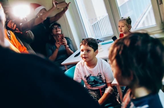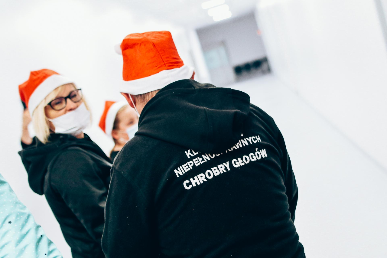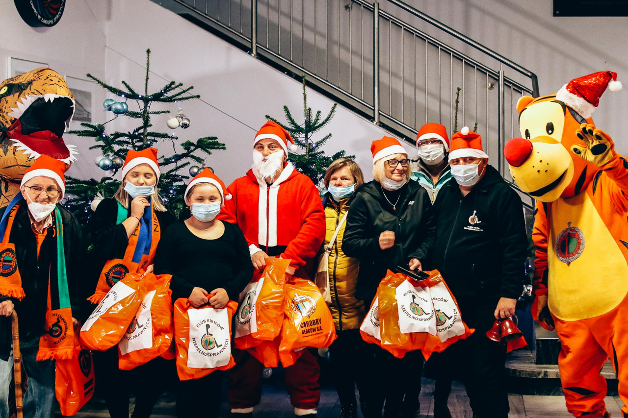 Świąteczny prezent od kibiców z KKN Chrobrego To, co tygryski lubią najbardziej. Skoro 6 grudnia, to dzieciaki i paczki. Razem z Klubem Kibiców Niepełnosprawnych byliśmy w głogowskim szpitalu. 06-12-2022 06:07 autor: ŁJ Klub Kibiców Niepełnosprawnych Chrobrego Głogów w przyszłym roku obchodzi dziesięciolecie istnienia. Z tej okazji ma dużo planów, ale nawet w kończącym się roku nie przestaje realizować innych. We wtorek z okazji 6 grudnia mieliśmy przyjemność wraz z członkami KKN udać się do głogowskiego szpitala. Przebywające w nim dzieci otrzymały od naszych fanów mikołajkowe paczki. Kibice Chrobrego z KKN nie po raz pierwszy udowadniają, że choć niektórzy z nich sami zmagają się z ograniczeniami, jeśli chodzi o dobroć dla innych – nie ma żadnych ograniczeń. Sami zebrali środki finansowe, za które przygotowali kilkadziesiąt paczek. Wcześniej jednak robili niezbędne zakupy i pakowali prezenty. A na finał akcji udali się do szpitala. Rok temu w identycznej akcji obdarowali potrzebujące rodziny, tym razem postanowili umilić czas spędzany w szpitalu przez dzieci. W taki dzień i przy okazji takiej akcji nie mogło zabraknąć czerwono-białych elementów, ale skoro to Chrobry i jego kibice – także pomarańczowych. Stąd obecność klubowej maskotki, która jak zawsze wywołuje uśmiech na twarzach najmłodszych.