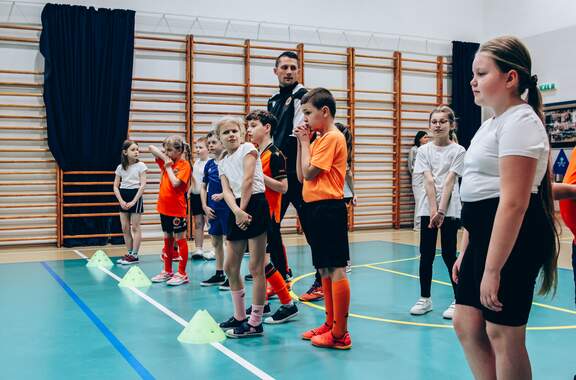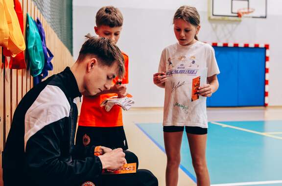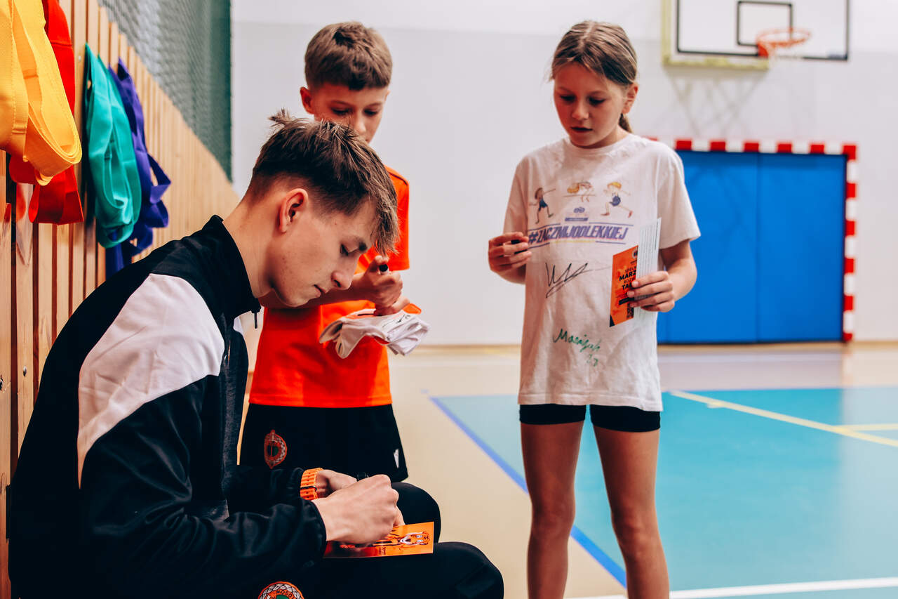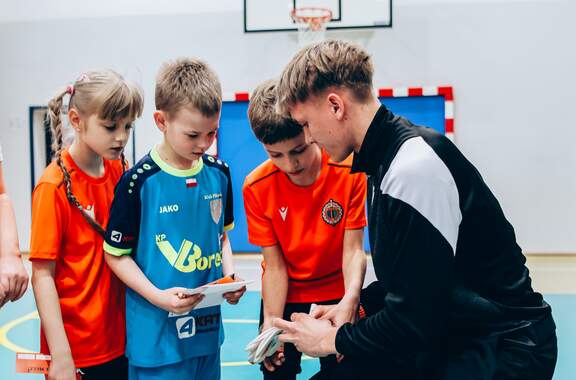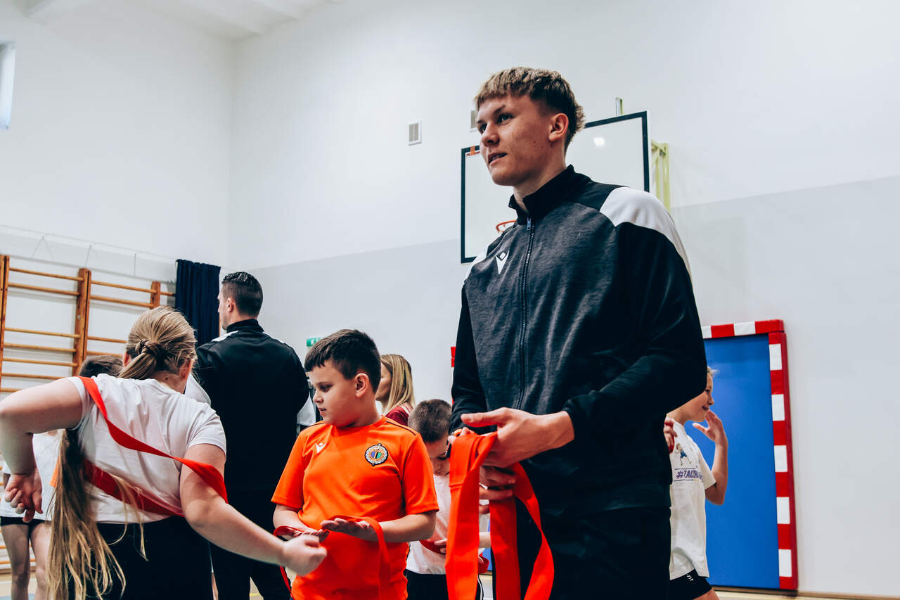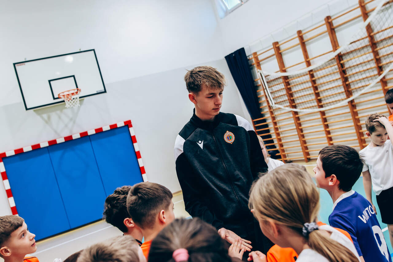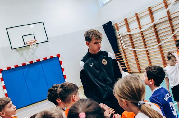 Pierwszy przystanek - "trzynastka" Chrobry Głogów rozpoczął wiosenną część wizyt w szkołach. Pierwszy przystanek – szkoła podstawowa nr 13 w Głogowie. 04-03-2026 12:24 autor: ŁJ Dziś odwiedziliśmy szkołę podstawową nr 13, inaugurując wiosenną część naszej akcji wizyt w szkołach, przedszkolach oraz organizacji zajęć dla najmłodszych na naszych obiektach. Na spotkanie z uczniami udali się zawodnicy szerokiej kadry pierwszej drużyny – Szymon Manijak oraz Wiktor Łaszyński – a także trener Akademii Piłki Nożnej Paweł Marszałek. Podczas wizyty dzieci mogły poznać młodych zawodników rozwijających swoje kariery piłkarskie, zdobyć pamiątkowe autografy, a także wziąć udział w treningu prowadzonym przez trenera Pawła Marszałka. Dzięki temu uczniowie mogli spróbować swoich sił w formie zajęć, jakie prowadzone są w Akademii dla najmłodszych roczników. Być może dla niektórych z nich będzie to pierwszy krok do rozpoczęcia piłkarskiej przygody. Zapraszamy do kolejnych zgłoszeń oraz rezerwacji terminów na najbliższe tygodnie i miesiące. Celem inicjatywy jest promowanie aktywności fizycznej wśród dzieci oraz pokazanie sportu od strony profesjonalnego środowiska piłkarskiego w przyjaznej atmosferze – przy udziale trenerów Akademii Piłki Nożnej, zawodników pierwszej drużyny oraz klubowej maskotki Tygryska. Placówki zainteresowane organizacją spotkania prosimy o kontakt mailowy lub telefoniczny w celu ustalenia dogodnego terminu oraz dopasowania programu wizyty do wieku i liczebności grupy. ZGŁOSZENIA: Barbara Krawczyk - specjalista ds. marketingu tel. służbowy 504 591 769 barbara.krawczyk@chrobry-glogow.pl TAK BYŁO W SP 13: