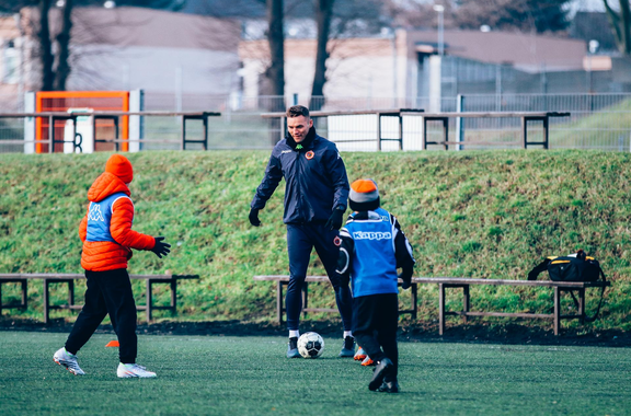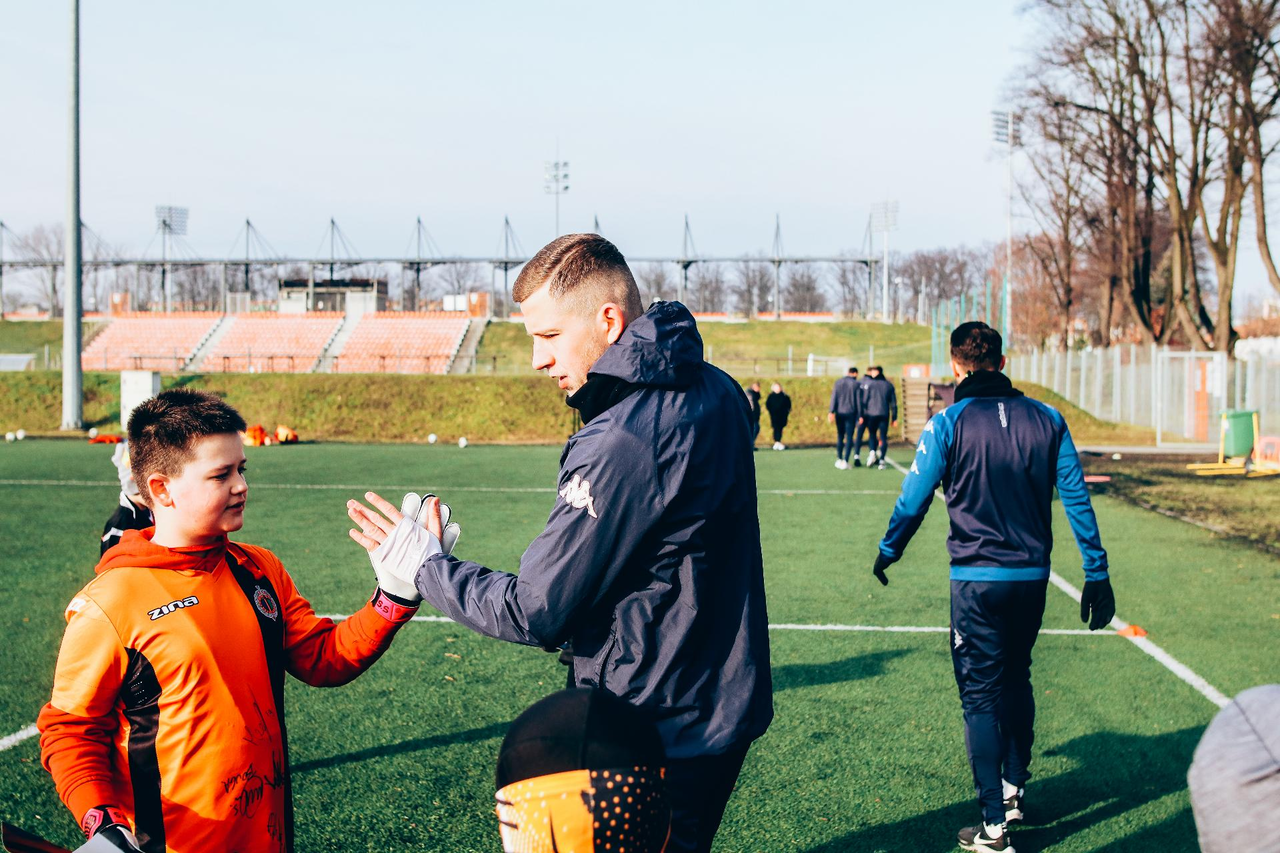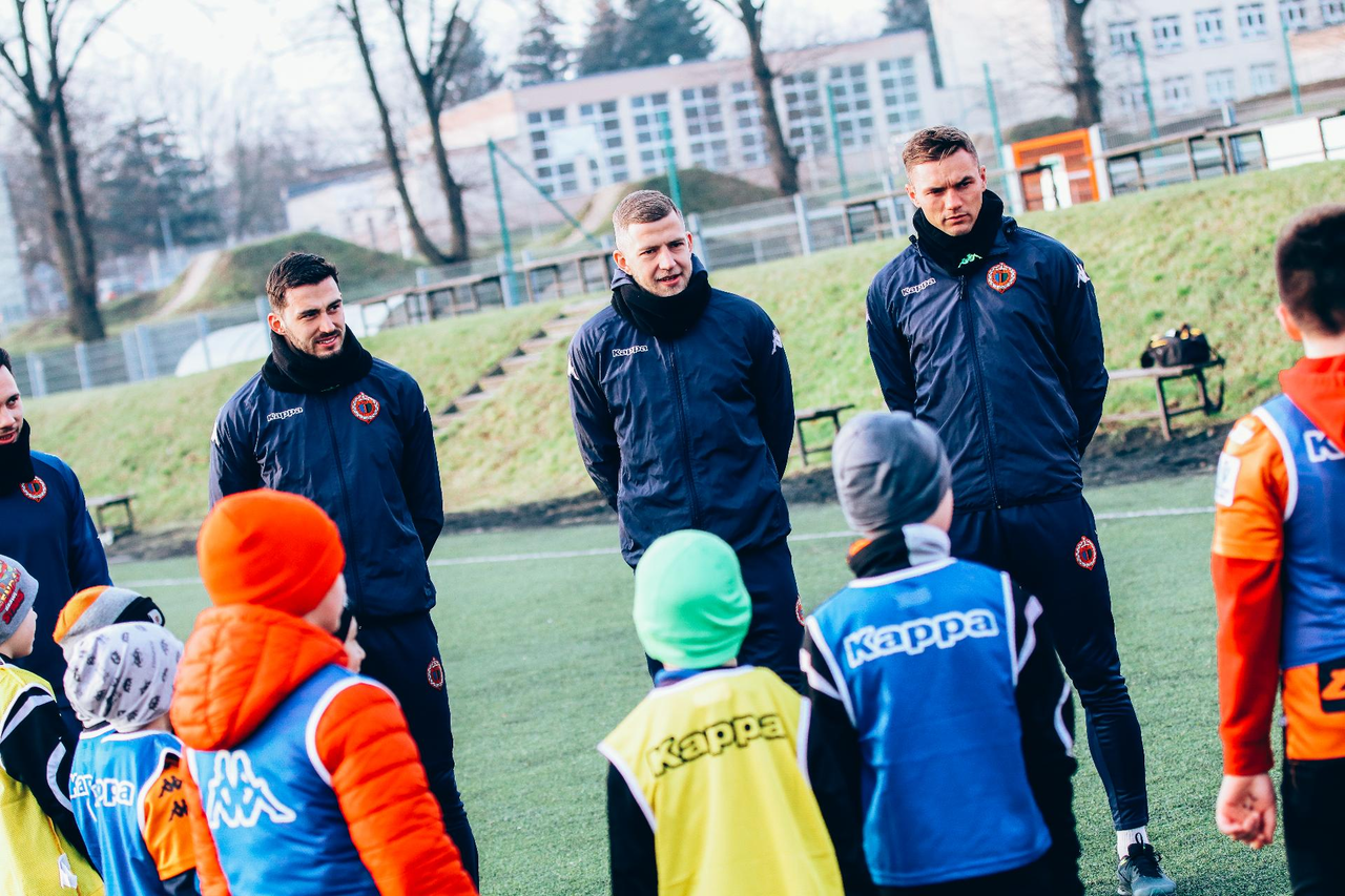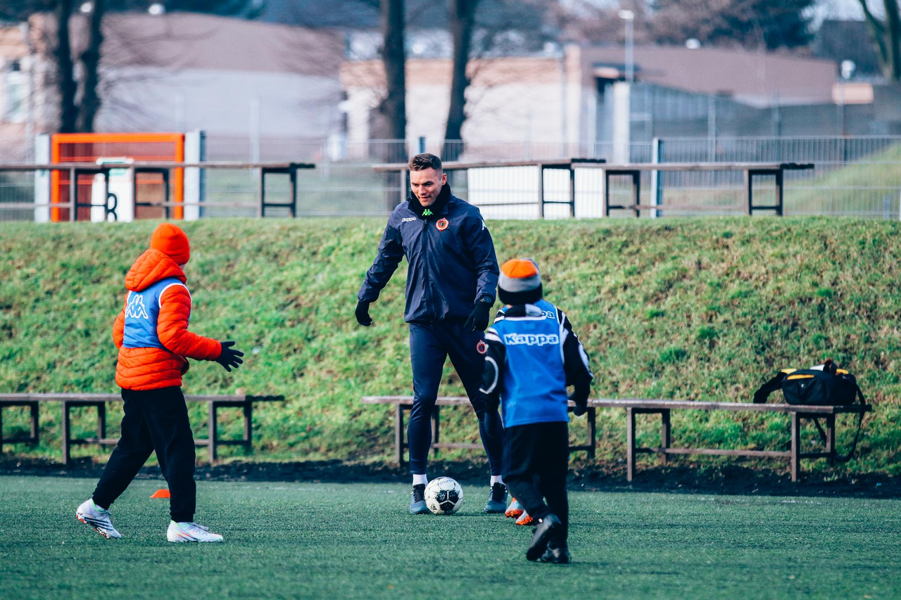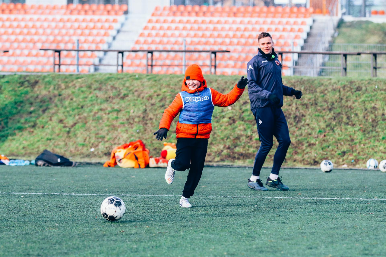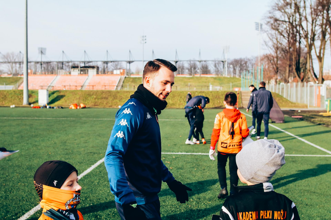 Pierwszoligowcy zagrali z dziećmi 8 rano i meldunek na boisku. Piłkarze pierwszej drużyny trenowali z uczestnikami Piłkarskich Ferii Zimowych Akademii Piłki Nożnej Chrobrego. 23-02-2023 09:55 autor: ŁJ W tym tygodniu – drugim podczas ferii zimowych – trwają Piłkarskie Ferie Zimowe organizowane przez klubową Akademię Piłki Nożnej. Opiekunem grupy jest trener Paweł Kliszka. Codziennie spędza ona czas na obiektach Chrobrego, trenując na boiskach, w hali czy pływalni, ale też poza, bo na przykład w środę wszyscy bawili się w Jump Planet, a dzień wcześniej oglądali piłkarski film podczas seansu w Teatrze im. Andreasa Gryphiusa. Najwięcej jest jednak piłkarskiej aktywności na boisku, która w czwartek z samego rana została urozmaicona odwiedzinami pierwszoligowców Chrobrego. Z dziećmi spotkali się Patryk Mucha, Karol Dybowski, Mavroudis Bougaidis, Sebastian Górski oraz Rafał Wolsztyński.