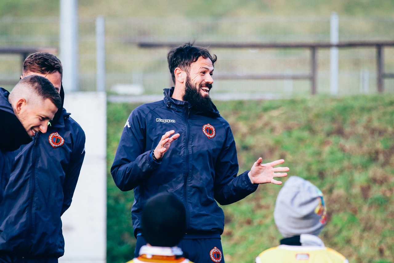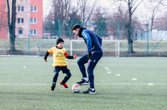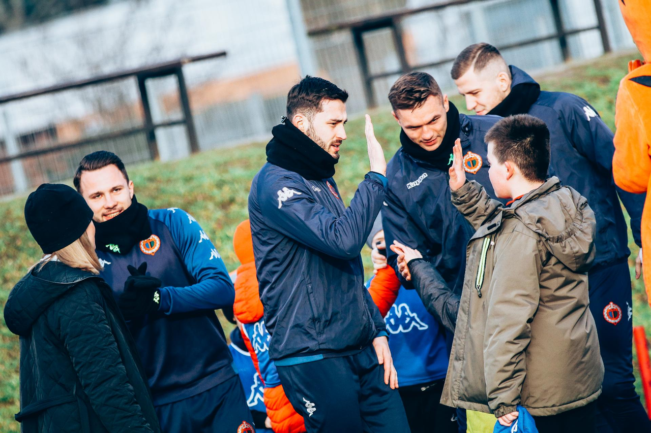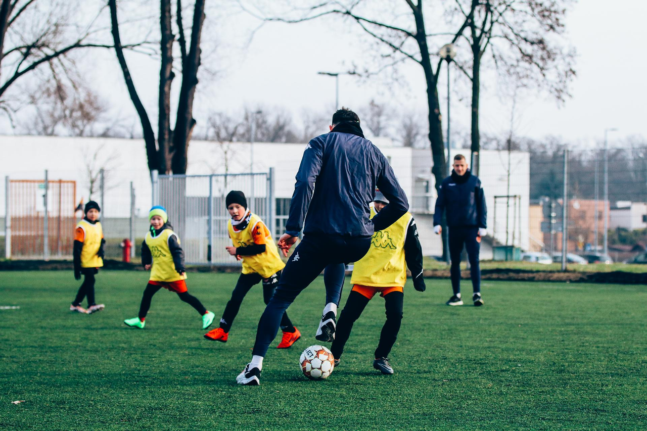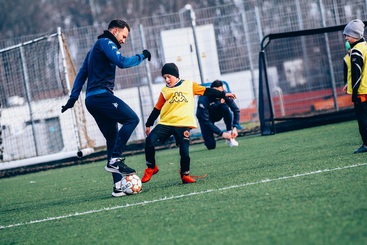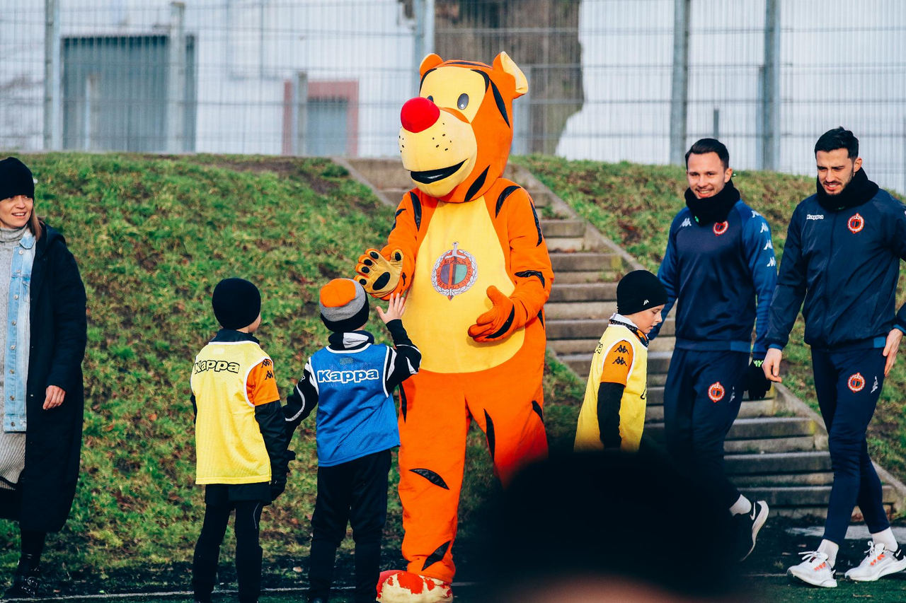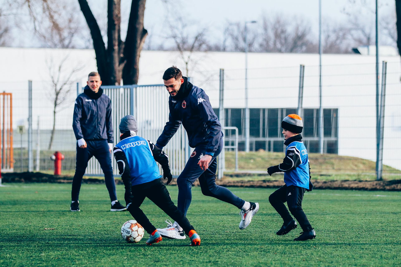 Pierwszoligowcy zagrali z dziećmi 8 rano i meldunek na boisku. Piłkarze pierwszej drużyny trenowali z uczestnikami Piłkarskich Ferii Zimowych Akademii Piłki Nożnej Chrobrego. 23-02-2023 09:55 autor: ŁJ W tym tygodniu – drugim podczas ferii zimowych – trwają Piłkarskie Ferie Zimowe organizowane przez klubową Akademię Piłki Nożnej. Opiekunem grupy jest trener Paweł Kliszka. Codziennie spędza ona czas na obiektach Chrobrego, trenując na boiskach, w hali czy pływalni, ale też poza, bo na przykład w środę wszyscy bawili się w Jump Planet, a dzień wcześniej oglądali piłkarski film podczas seansu w Teatrze im. Andreasa Gryphiusa. Najwięcej jest jednak piłkarskiej aktywności na boisku, która w czwartek z samego rana została urozmaicona odwiedzinami pierwszoligowców Chrobrego. Z dziećmi spotkali się Patryk Mucha, Karol Dybowski, Mavroudis Bougaidis, Sebastian Górski oraz Rafał Wolsztyński.