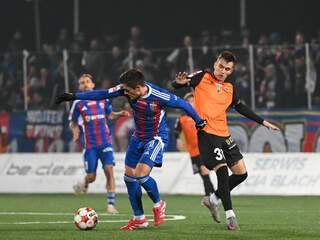 Na koniec bez zdobyczy, ale nadal w czołówce Chrobry wraca z Bytomia bez punktów. Polonia wygrała na swoim obiekcie 2:0, a oba gole padły w pierwszych 13 minutach. 07-12-2025 07:26 autor: ŁJ Polonia szybko potwierdziła bardzo wysoką dyspozycję i to, że gra zespołu po awansie wciąż utrzymuje się na wysokiej fali. Już w 13. minucie było 2:0. W 9. minucie Dawida Arndta pokonał Konrad Andrzejczak, a cztery minuty później Jakub Arak. W obu przypadkach bramki padły po dośrodkowaniach z boku boiska i skutecznych strzałach głową z bliskiej odległości. Chrobry próbował się poderwać i trzeba przyznać, że z każdą minutą gra nabierała rozpędu. W 31. minucie na strzał zza szesnastki zdecydował się Szymon Bartlewicz, ale musiał interweniować bramkarz bytomian, Axel Holewiński. Po 120 sekundach, po dośrodkowaniu Kacpra Nowakowskiego z rzutu rożnego, groźnie główkował Kacper Laskowski, jednak i tym razem piłka trafiła w ręce Holewińskiego. Po 45 minutach było 2:0 dla Polonii, jednak postawa głogowian pozwalała wierzyć, że na tym jeszcze nie koniec Pokazał to początek drugiej połowy – zaraz po wznowieniu gry na listę strzelców mógł wpisać się próbujący wykończyć akcję Myroslav Mazur. Niestety, niedługo potem Chrobry stracił Szymona Bartlewicza, który w wyniku kontuzji musiał opuścić boisko. Ta nieco dłuższa przerwa wyraźnie podziałała destabilizująco na zespół. Kolejne szanse stwarzała bowiem Polonia – Dawida Arndta starali się pokonać Lucjan Zieliński, Kacper Michalski czy Jakub Arak, ale bramkarz Pomarańczowo-Czarnych pewnie strzegł dostępu do bramki. Głogowianie próbowali jeszcze coś zdziałać – jak w 89. minucie, gdy po rozegraniu rzutu rożnego nieznacznie niecelnie uderzył Kacper Laskowski. Nic z tego. Polonia po raz kolejny okazała się wymagającym rywalem i po raz drugi w tym sezonie pokonała Chrobrego, tym razem 2:0. Na tym tegoroczna część zmagań w Betclic 1 Lidze dobiegła końca. To bardzo dobry okres dla Chrobrego i pomimo porażki z niecierpliwością można zacierać ręce na to, co wydarzy się od lutego 2026. fot. 400mm.pl