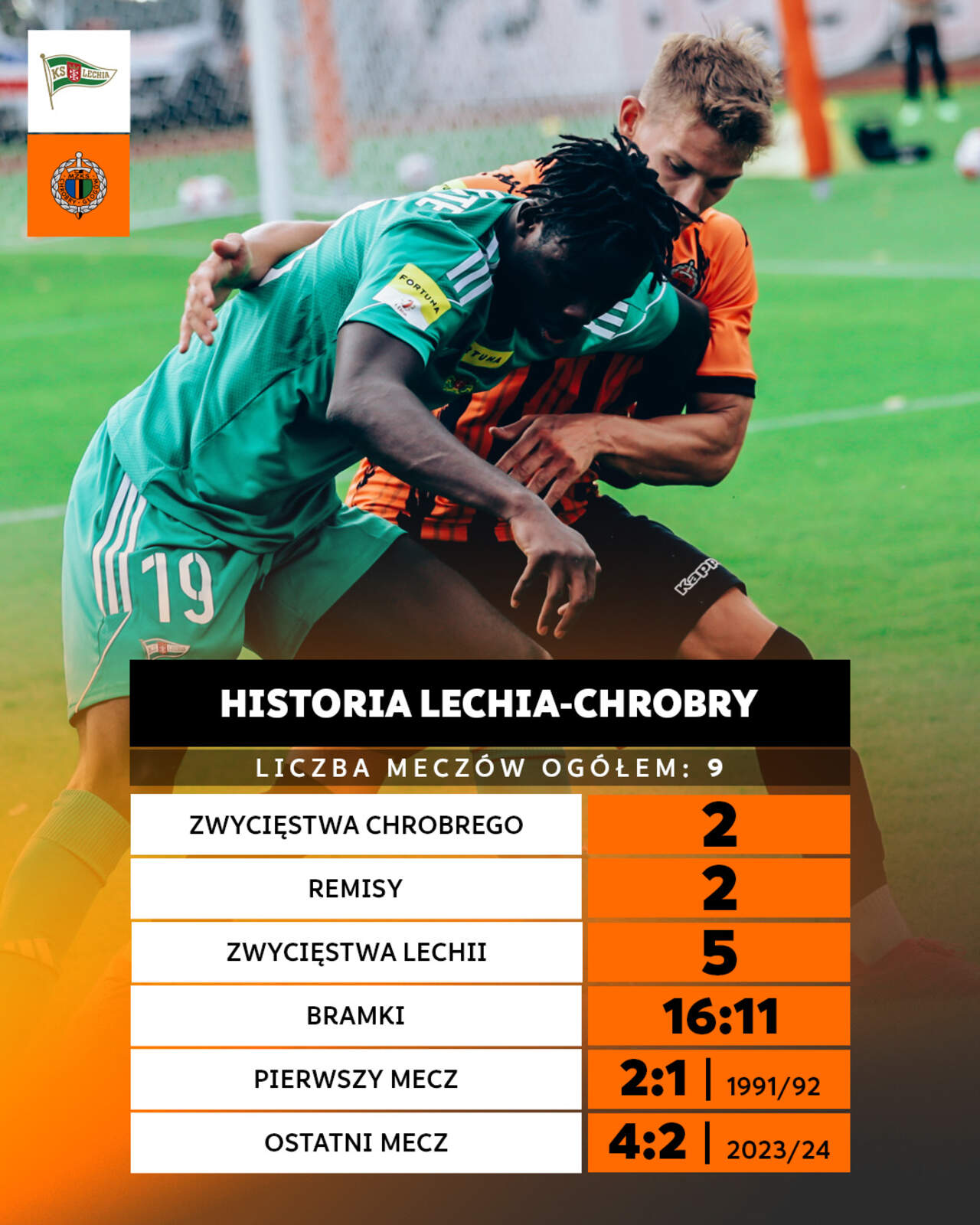 Przed meczem z Lechią Gdańsk W sobotę Gdańsk. Garść informacji przed meczem z Lechią w tradycyjnym raporcie. 08-12-2023 07:25 autor: ŁJ Mocniejsi niż w lipcu Lechia w nowym sezon wkraczała po spadku z Ekstraklasy, z nowym trenerem i dopiero budowaną kadrą, więc początek w jej wykonaniu nie należał do stabilnych. Długo nie potrafiła złapać choćby mini-serii zwycięstw. Dwa z rzędu osiągnęła dopiero w październiku. Jednak trochę wcześniej zespół zdawał się wychodzić na prostą, bo na początku września przyjął pięć goli od będącego dziś w strefie spadkowej Zagłębia Sosnowiec, by w drugiej części tego miesiąca wygrać z GKS-em Katowice 5:1. Obecnie Lechia cały czas jest nad formą, a nie pod. W sześciu ostatnich kolejkach odniosła cztery zwycięstwa i raz zremisowała, a to daje jej trzecią pozycję w tabeli. Jedyną w tym okresie porażkę poniosła w Derbach Trójmiasta z aktualnym liderem - Arką Gdynia. Po tym widać, jak ciężki pojedynek przed Chrobrym. Fot. Polsat Plus Arena Gdańsk Kadra rywala. Bez Fernandeza Grając w lipcu w Głogowie, Lechia miała już swojego najlepszego strzelca - Luisa Fernandeza, ale była w trakcie dozbrajania się. Jeszcze wtedy w jej kadrze nie było wsparcia z zagranicy. Do zespołu stopniowo dołączali Słowak Tomas Bobcek, Rumun Andrei Chindriș, Ukrainiec Maksym Khlan, Australijczyk Louis D'Arrigo, Kolumbijczyk Camilo Mena czy Szwed Elias Olsson. Mena, Chindriș oraz Olsson mają już ponad 1000 rozegranych minut i są piłkarzami podstawowego składu, ale nie wszyscy spośród wyżej wymienionych zagrają przeciwko Chrobremu. O ile mogą to zrobić ci, których w Lechii nie było w lipcu, o tyle ten, który wystąpił w Głogowie - Lusi Fernandez z sześcioma ligowymi bramkami na koncie jest kontuzjowany. "Niektórzy dopisują nam punkty, ale my mocno stąpamy po ziemi" - Liczy się najbliższy przeciwnik, a on będzie najgroźniejszy i nie jest to z mojej strony żadna kurtuazja. To chłodna ocena tego, co Chrobry na ten moment prezentuje. To drużyna bardzo dobrze zorganizowana w niskiej i średniej obronie i bardzo dobrze egzekwująca stałe fragmenty. Przygotowujemy się bardzo mocno, jeśli chodzi o aspekt mentalny. Niektórzy już przypisują nam trzy punkty, a my mocno stąpamy po ziemi - powuedział trener Lechii Szymon Grabowski. Klubowe powiązania W barwach Lechii powinniśmy z pewnością zobaczymy Dominika Piłę, dla którego klub z Gdańska jest pierwszym od momentu odejścia z Chrobrego. W tym sezonie zagrał w 16 meczach, w których zdobył dwa gole. Jednego z nich w ostatnim spotkaniu z Miedzią Legnica. Wtedy na boisku pojawił się w 90 minucie i zdążył ustalić rezultat pojedynku na 2:0. Byłym zawodnikiem Lechii jest natomiast Mavroudis Bougaidis. Do Polski trafił w 2014 roku i to właśnie Lechia była jego pierwszym w naszym kraju klubem. W Gdańsku spędził rok i wystąpił w 12 spotkaniach Ekstraklasy. Jeszcze dłużej, po ponad 2 lata, w Lechii był Mateusz Machaj. Do Gdańska przenosił się w 2011 roku po bardzo dobrym sezonie w Chrobrym, którego poprowadził do awansu do 2 Ligi. W najwyższej lidze w barwach Lechii zagrał w 47 meczach, w których zdobył trzy bramki. 10. mecz z Lechią Większość meczów rozegrano w poprzednim tysiącleciu, a do tej pory tylko jedno w obecnym. Spotkanie z lipca, w którym Chrobry przegrał z Lechią 2:4, było dziewiątym w historii obustronnych starć. Liczba meczów Chrobry-Lechia: 9 Zwycięstw Chrobrego: 2 Remisów: 2 Porażek: 5 Bramki Chrobry-Lechia: 11:16 Obsada sędziowska Sędzia główny: Sylwester Rasmus (Kończewice) Fot. Polsat Plus Arena Gdańsk