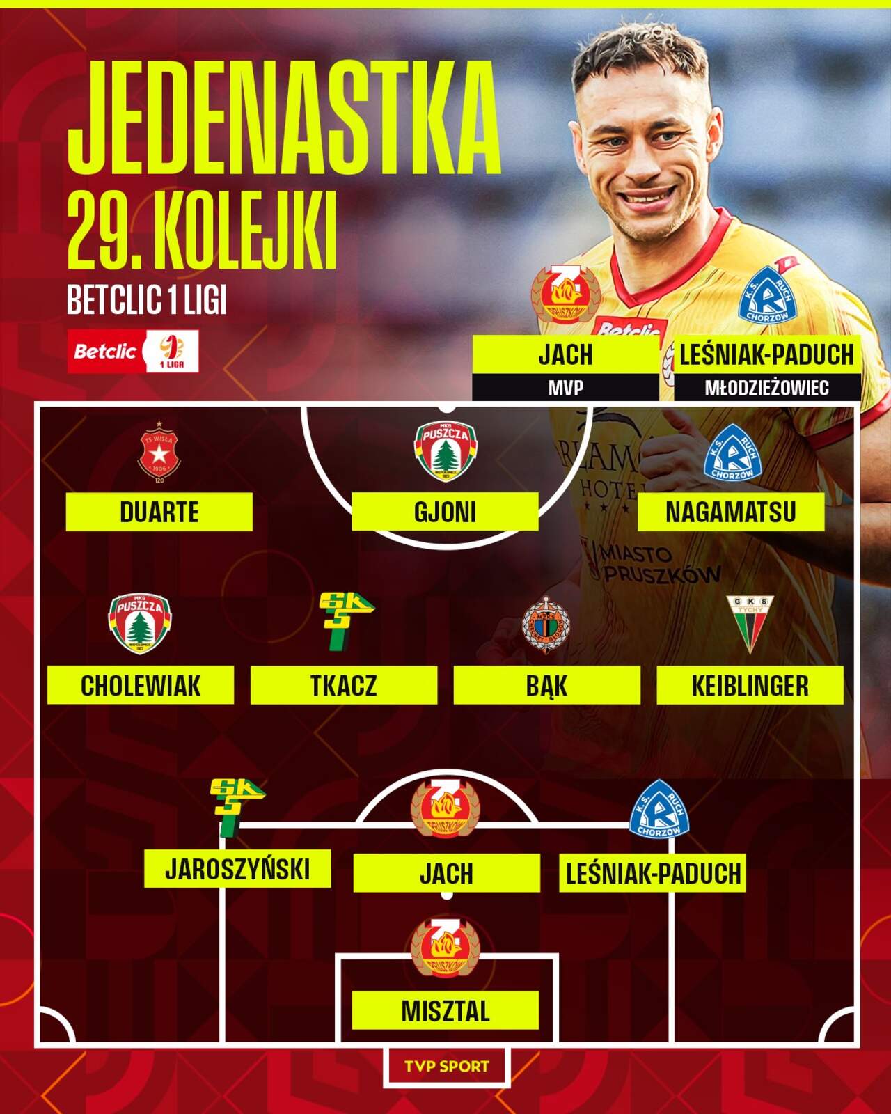 Radosław Bąk w najlepszej jedenastce Szósty występ w Chrobrym z bramką i obecnością w najlepszej "11" całej kolejki. Radosław Bąk został do niej wybrany przez redakcję TVP Sport. 21-04-2026 08:00 autor: ŁJ