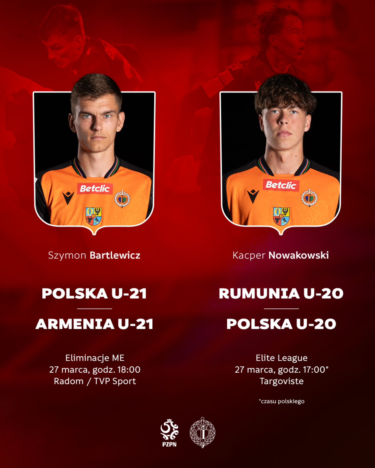 Reprezentacyjna przerwa? Nasi zawodnicy nie zwalniają! Czas przerwy reprezentacyjnej to dla kibiców świetna okazja, by zobaczyć w akcji zawodników Chrobrego w narodowych barwach. Tym razem na międzynarodowej scenie pojawią się Szymon Bartlewicz oraz Kacper Nowakowski. Sprawdźcie, kiedy zagrają! 26-03-2026 11:32 autor: ŁJ Oba spotkania z udziałem naszych piłkarzy zaplanowano na piątek, 27 marca. Najpierw, o godz. 17:00 czasu polskiego, reprezentacja Polski U-20 zmierzy się na wyjeździe z Rumunią w ramach rozgrywek Elite League. W tym meczu szansę występu może otrzymać Kacper Nowakowski. Z kolei Szymon Bartlewicz przebywa na zgrupowaniu kadry U-21, gdzie stanie przed szansą występu w meczu eliminacji mistrzostw Europy. Spotkanie odbędzie się o godz. 18:00 w Radomiu, a transmisję przeprowadzi TVP Sport. Harmonogram występów: Kacper Nowakowski Elite League27 marca17:00 (czasu polskiego)Târgoviște Szymon Bartlewicz Eliminacje ME U-2127 marca18:00RadomTransmisja: TVP Sport