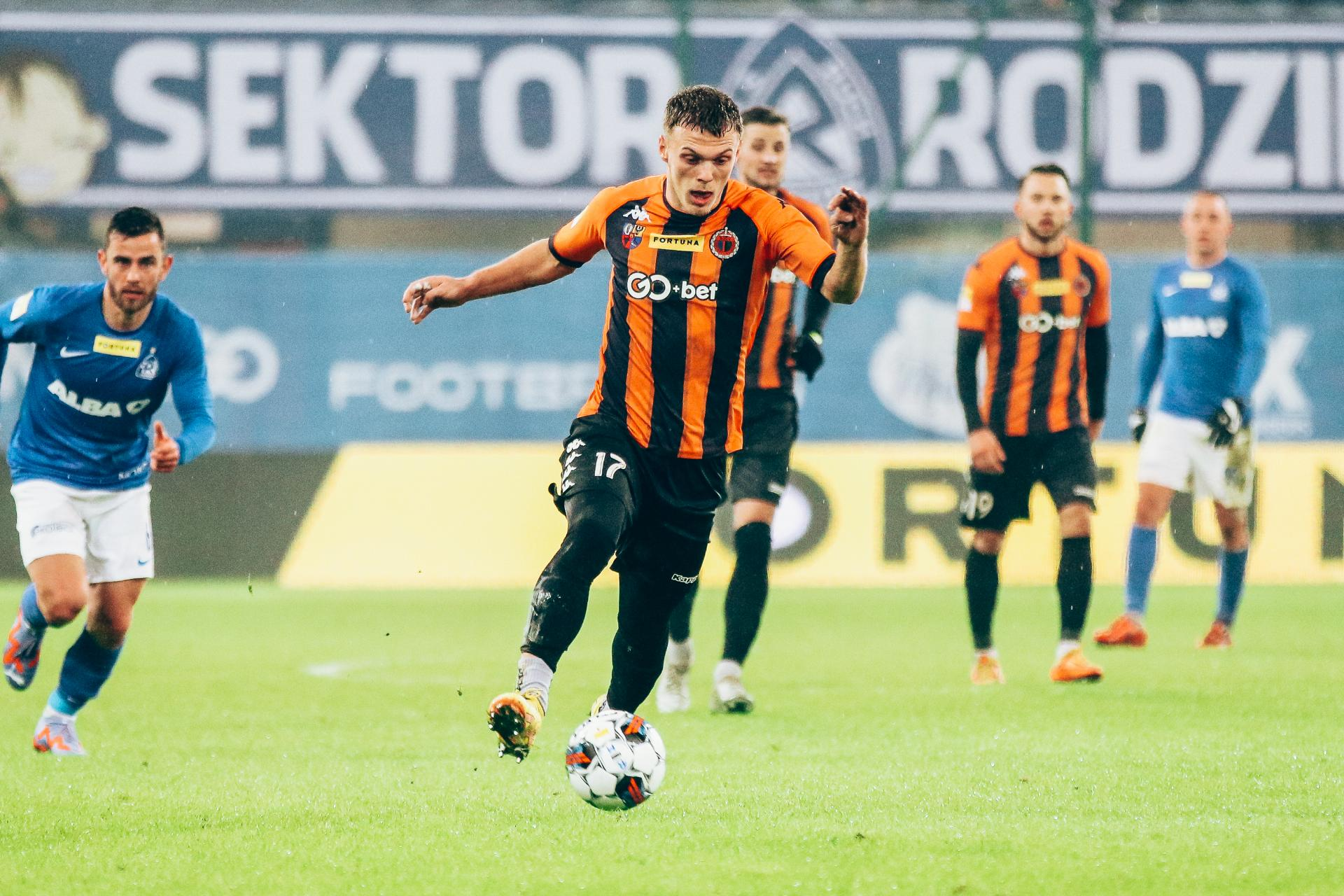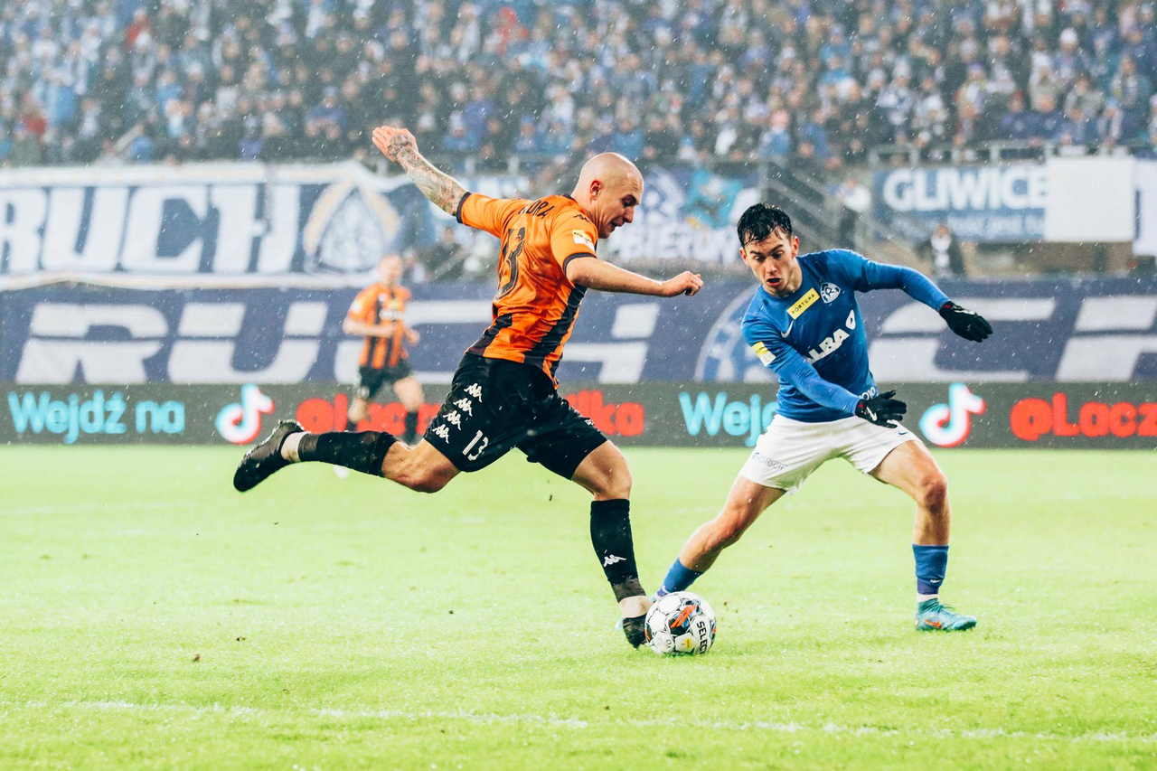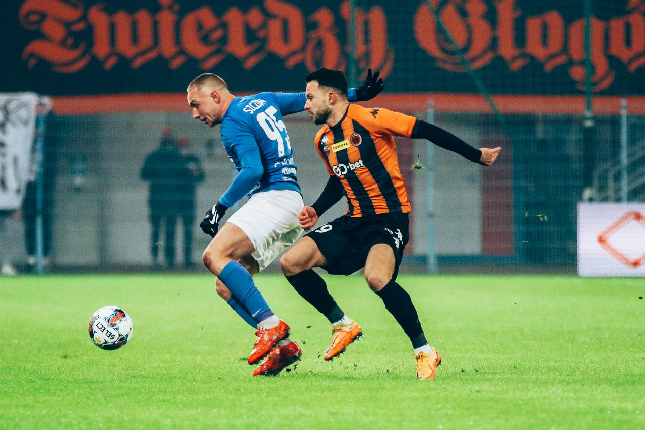 Pechowy start Chrobrego. Gol w doliczonym czasie Doliczony czas gry i podyktowany wtedy rzut karny rozstrzygnął losy spotkania w Gliwicach. Ruch Chorzów po golu niemal w ostatnim momencie pokonał Chrobrego 1:0. 11-02-2023 07:19 autor: ŁJ Na starcie trener Marek Gołębiewski nie mógł skorzystać z kilku kontuzjowanych graczy, Roberta Mandrysza, Olivera Praznovsky’ego i - podobnie jak jesienią - Michała Ilkowa-Gołąba z Pawłem Tupajem. W „11” zadebiutował Sebastian Górski, a po raz pierwszy w szerokiej kadrze znaleźli się Adrian Tworzydło oraz Mateusz Ozimek. Chrobry starał się być aktywny od początku. Najpierw niecelny strzał oddał Sebastian Górski, ale dwa kolejne mogły zostać zamienione na bramkę. Przed świetnymi okazjami stanął w 7 i 17 minucie urywający się rywalom Kamil Wojtyra, tyle że Jakub Bielecki był nie do przejścia w obu przypadkach. Szukający gola Wojtyra próbował takie wyjście powtórzyć, lecz był już wtedy skutecznie powstrzymywany, a zawodnicy Ruchu robili to dwukrotnie nawet kosztem żółtej kartki. Po drugiej stronie najniebezpieczniej było w 29 minucie. Strzelał Michał Feliks, ale Karol Dybowski nie dał się zaskoczyć. Pierwsze 45 minut zdawało się być zgodne z tym, co mówiła tabela. Dwie drużyny, dwie z czołówki i dwie obok siebie, a co za tym idzie zacięty pojedynek z szansami po obu stronach. Druga połowa zmieniła jednak oblicze rywalizacji, zwłaszcza jej ostatnich kilkanaście minut. Do tego momentu głogowianie z przodu mieli niecelną główkę Mavroudisa Bougaidisa. Stopniowo do głosu zaczynali coraz bardziej dochodzić gospodarze i bardzo nasiliło się to w ostatnim kwadransie. Wpływ mogła mieć sytuacja z 81 minuty, gdy Tomasz Swędrowski wychodził sam na sam, co faulem ratował Mavroudis Bougaidis. Po czerwonej kartce dla obrońcy Pomarańczowo-Czarnych było bardzo gorąco i miejscowi mieli kilka szans na objęcie prowadzenia. Przed bardzo dobrymi okazjami stawali Tomasz Swędrowski czy Łukasz Moneta, a świetnie bronił Karol Dybowski. Sędzia przedłużył mecz aż o 7 minut i w doliczonym czasie gry chorzowianie wywalczyli - tak można to nazwać wobec ich ataków - rzut karny. Na zwycięską bramkę zamienił go wchodzący na boisko kilka minut wcześniej Tomasz Foszmańczyk. W kolejnym meczu Chrobry zmierzy się z Chojniczanką Chojnice. Spotkanie 20 kolejki F1L w niedzielę 19 lutego o godz. 18.00 na stadionie w Głogowie.