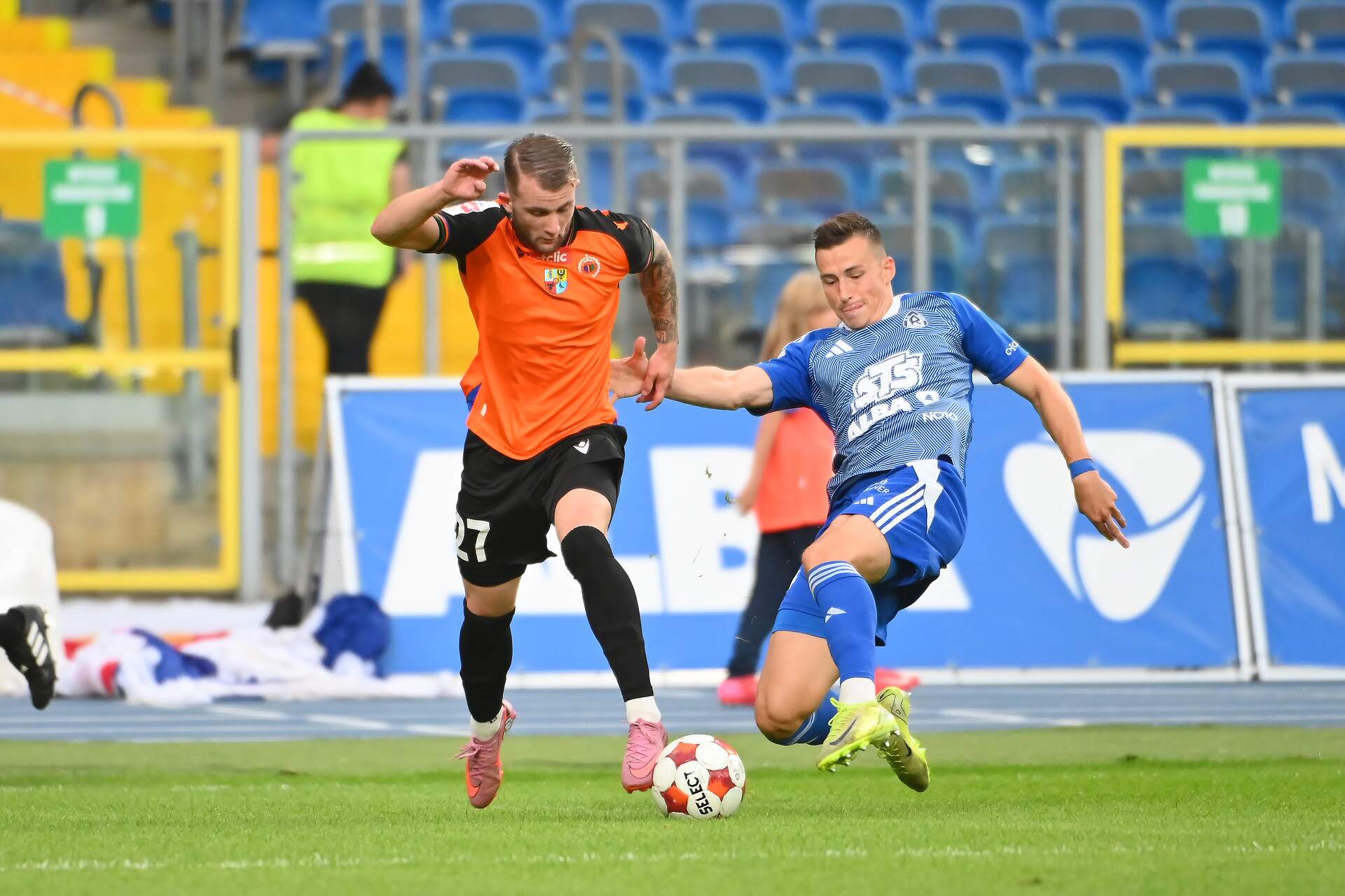 Ruch Chorzów - Chrobry Głogów 2:1 W 10. kolejce Betclic 1 Ligi Chrobry Głogów przegrał z Ruchem Chorzów na Stadionie Śląskim 1:2. 22-09-2025 07:30 autor: ŁJ RUCH CHORZÓW - CHROBRY GŁOGÓW 2:1 (1:1) 1:0 Piotr Ceglarz 40 1:1 Mateusz Ozimek 45 2:1 Piotr Ceglarz 73 (k) RUCH: 82. Jakub Bielecki - 15. Martin Konczkowski, 28. Nikodem Leśniak-Paduch, 24. Aleksander Komor, 4. Dominik Preisler - 21. Patryk Szwedzik (71, 30. Jakub Sobeczko), 20. Szymon Szymański, 25. Denis Ventúra (71, 27. Mateusz Szwoch), 18. Shuma Nagamatsu, 77. Piotr Ceglarz (81, 22. Maciej Żurawski) - 7. Marko Kolar (80, 9. Tomasz Bała). CHROBRY: 99. Dawid Arndt - 29. Paweł Tupaj, 8. Jakub Grič, 18. Myrosław Mazur, 80. Kacper Tabiś (90, 21. Michał Kozajda) - 27. Kacper Laskowski (81, 10. Piotr Janczukowicz), 7. Sebastian Bonecki (69, 23. Szymon Lewkot), 16. Robert Mandrysz, 9. Mateusz Ozimek (90, 13. Jakub Kuzdra) - 11. Sebastian Strózik, 30. Szymon Bartlewicz (69, 15. Kacper Nowakowski). ŻÓŁTE KARTKI: Leśniak-Paduch, Bała, Nagamatsu - Mandrysz, Ozimek, Bonecki. CZERWONA KARTKA: Paweł Tupaj (88. minuta, Chrobry, za faul). SĘDZIA: Mariusz Myszka (Stalowa Wola). WIDZÓW: 10 020. fot. 400mm.pl