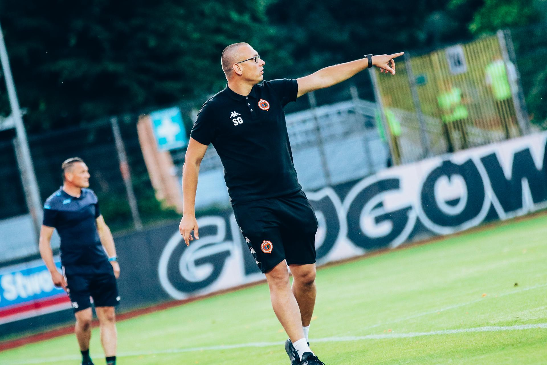 "Zbiera się plony tego, co się zasiało" Rozmowa z trenerem Chrobrego II Głogów Sebastianem Górskim. 17-06-2022 05:16 autor: ŁJ Dla wychowanka klubu, trenera Sebastiana Górskiego, to był dopiero pierwszy sezon w seniorskiej lidze, ale z pewnością nigdy go nie zapomni. Chrobry II, który wespół z trenerem Tomaszem Trznadlem prowadzi, awansował do 3 Ligi, a w meczu decydującym o tym historycznym dla klubu wydarzeniu Pomarańczowo-Czarni pokonali Lechię Dzierżoniów od trzeciej minuty grając w dziesięciu. – To spore osiągniecie i wyzwanie, którego chcemy się podjąć, bo takie lubimy – mówi. Pierwsza myśl po czerwonej kartce w trzeciej minucie to... Czy to dzieje się naprawdę? W głowie pojawił się obraz całego sezonu, chwile które razem przeszliśmy, wysiłek zespołu włożony w to, aby znaleźć się w tym miejscu. Umówmy się, dziś wiemy, jak to się skończyło i jest nam łatwiej opiniować, ale wtedy wiedzieliśmy w jak trudnej sytuacji się znaleźliśmy i że w piłce nożnej takie zakończenia się nie zdarzają. Kilka minut później wydarzyło się coś nieprawdopodobnego, kluczowego. I nie chodzi mi tu o strzeloną bramkę, a o czas pomiędzy czerwoną kartką a bramką. Obserwowaliśmy reakcję zawodników. Po zachowaniu zespołu widać było, że nasi zawodnicy nie przestają wierzyć, że zaakceptowali sytuację, jaka nastąpiła, przyjęli ją na klatę i postanowili walczyć. To nas pobudziło, to był impuls od zespołu mówiący, trenerze – damy radę. W tym momencie wewnętrznie odczułem ich energię i z dumą patrzyłem na nich zachowania. Wtedy przyszła myśl – no dobra, to zróbmy to. Gdy już od trzeciej minuty gra się w dziesięciu wszelkie pomysły i taktyka na mecz biorą w łeb. Chyba że byliście przygotowani na taką ewentualność i wiedzieliście, jak zagrać, żeby wygrać? Mieliśmy plan na ten mecz, ale nie o taki plan chodziło... To trochę jak w życiu, musisz umieć reagować na ciągle zmieniające się okoliczności. Nie przygotowujesz się do jednego konkretnego dnia. Wszystko, co robisz prowadzi cię w miejsce, w którym jesteś. Albo robisz to świadomie albo nie. Tak czy inaczej zbierzesz plony, które zasiałeś. Zespół zdał egzamin. Jak wygląda przerwa w szatni zespołu, który co prawda prowadzi, ale wie, że czeka go jeszcze 45 minut gry w osłabieniu z bardziej doświadczonym i faworyzowanym przeciwnikiem? I to jest kolejna historia, której nie zapomnimy i której nie da się opisać nie będąc w środku. Ktoś z góry musiał nad tym czuwać. Odprawa przedmeczowa była odniesieniem do pierwszych dni naszej wspólnej pracy podczas obozu, sytuacji która była z nami przez cały sezon. W przerwie pojawił się nowy wątek, być może kierunek, w którym będziemy podążać w kolejnym okresie. Czasami jeden gest, jedna reakcja może zmienić wszystko. Sezon zaczęliście od zwycięstwa, ale w trzech kolejnych meczach wywalczyliście punkt. Wtedy, jak pamiętam, nie mówiło się o awansie do 3 Ligi jako celu? Celem był rozwój indywidualny naszych zawodników, ogrywanie ich na poziomie seniorskim i utrzymanie w czwartej lidze. Mieliśmy świadomość trudności projektu, jakiego się podjęliśmy, a decyzja, która została podjęta była bardzo odważna. Byliśmy najprawdopodobniej najmłodszym zespołem seniorskim w Polsce, ewenementem w skali kraju. Projekt zakładał trzyletni okres, którego efektem końcowym miał być awans do trzeciej ligi. To był dobrze zaplanowany proces, wiedziałem w którym kierunku idziemy i jaką pracę zamierzamy wykonać. Potrzebowaliśmy czasu i cierpliwości – otrzymaliśmy go. Wiedzieliśmy, że to przyniesie rezultaty. Wszystko jednak wymknęło się w pozytywnym sensie spod kontroli. Postęp był widoczny gołym okiem. To dowód na to, że można. Kiedy taka chęć awansu lub możliwość jego wywalczenia się pojawiła? Myślę, że były dwa kluczowe momenty, w których uwierzyliśmy, że można i że chcemy. Pierwszym była rozmowa z zespołem po jednym ze sparingu w okresie przygotowawczym przed rundą rewanżową. Drużyna dała sygnał, że czuje się mocna. Drugim momentem była rozmowa po zremisowanym meczu z Jaworzanką Jawor w końcówce sezonu. Wtedy zespół pokazał, że mu zależy, że czuje możliwość zrobienia tego. To są momenty na co dzień niewidoczne, ale kluczowe. Trener musi je widzieć i odpowiednio reagować. "W tym momencie, nie wliczając Ekstraklasy, tylko Chrobry Głogów i ŁKS Łódź mają swoje rezerwy na tym poziomie. To spore osiągnięcie i wyzwanie, którego zamierzamy się podjąć. Mamy świadomość, że nie jest to łatwe zadanie, ale takie lubimy". Królem strzelców ligi został Miłosz Jóźwiak. To był najlepszy zawodnik zespołu? Czy możesz kogoś wyróżnić? Wyróżniam... zespół. Ktoś strzela bramki, ktoś jej broni, ktoś asystuje, ktoś drybluje, a jeszcze inny w ostatniej minucie meczu barażowego wybija piłkę zmierzającą do naszej bramki. Drużyna to organizm, którego każda komórka jest bardzo istotna i odgrywa swoją rolę. Każdy jest inny, ma inną osobowość, charakter, styl. Należy to rozumieć i szanować. Ale każdy jest tak samo wartościowy i ważny. Realizacja celów następuje tylko wtedy, kiedy zespół pracuje w odpowiedni sposób. A Miłosz... jest kozakiem, jakich wielu w tym zespole. Często podkreślałeś, że Chrobry II to projekt. Czym dla tego projektu jest awans do trzeciej ligi i czy formuła gry w czwartej lidze się wyczerpała, skoro wiele meczów wygrywaliście wysoko? Awans daje możliwość sprawdzenia naszej młodzieży na poziomie trzecioligowym, znacznie wyższym niż dotychczas. W tym momencie, nie wliczając Ekstraklasy, tylko Chrobry Głogów i ŁKS Łódź mają swoje rezerwy na tym poziomie. To spore osiągnięcie i wyzwanie, którego zamierzamy się podjąć. Mamy świadomość, że nie jest to łatwe zadanie, ale takie lubimy. Wyniki w czwartej 