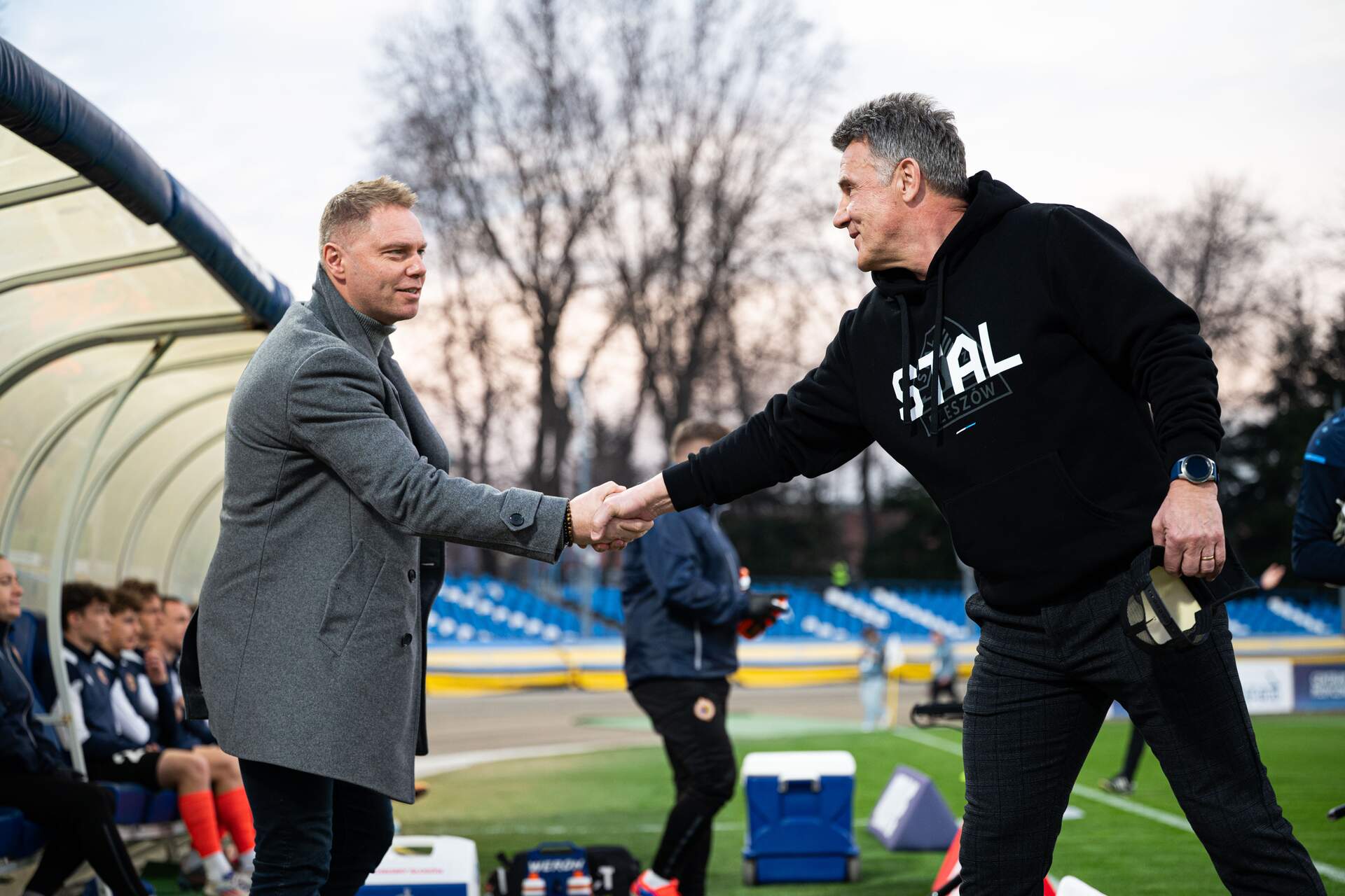 "Wchodzą kolejni i chcą udowadniać" Trenerzy Łukasz Becella i Marek Zub po meczu w Rzeszowie. 09-03-2025 08:10 autor: ŁJ Łukasz Becella, trener Chrobrego: To dla nas cenny punkt. Wiemy, o co gramy i za ten cel musimy być odpowiedzialni. To punkt zdobyty na wyjeździe i u rewelacji sezonu, który jest na ustach wielu fachowców. Bardzo dobrze do tego meczu się przygotowywaliśmy. Wiedzieliśmy, że nie możemy tutaj zaprezentować otwartego futbolu. Cieszy nas pierwszy kwadrans pierwszej i drugiej połowy, bo wtedy byliśmy przy piłce, rozwijaliśmy ataki i chcieliśmy próbować zdobyć bramkę. Stworzyliśmy trzy sytuacje, z których były trzy interwencje bramkarza. Przeciwnik miał tylko jedną taką. Mimo, że Stal miała w późniejszych fragmentach, po tych kwadransach, przewagę, jeśli chodzi o utrzymywanie się przy piłce i stwarzanie sytuacji, to nie zdołała oddać skutecznego strzału. W końcówce mogliśmy pokusić się o zwycięstwo, ale jesteśmy zespołem, który musi na to ciężko zapracować. Nie doszukujemy się jednak, że mogliśmy czy powinniśmy wygrać. To sprawiedliwy remis. Cieszy nas dobra gra Mateusza Lewandowskiego, który przy dwóch młodych obrońcach potrafił utrzymać się przy piłce. Mieliśmy swój plan, żeby podchodzić pod niego, wyciągać przeciwników i poszukać fazy przejściowej. Cieszymy się, że kontynuujemy czyste konto. Gratuluje bramkarzom i trenerowi bramkarzy. To chyba już 92 mecz z czystym kontem w karierze Pawła Lenarcika. Po to go sprowadziliśmy, by razem z nim walczyć o ten dobry wynik. Przyjechaliśmy tu z problemami, bez pięciu podstawowych zawodników, lecz cieszy, że wchodzą kolejni i chcą udowadniać, że są godnymi piłkarzami walczącymi o utrzymanie Chrobrego. Marek Zub, trener Stali: Dokładnie takiego meczu się spodziewaliśmy. Przeciwnik, tak jak wyglądało to w ostatnich meczach, zdecydowanie lepiej prezentuje się w organizacji gry, jest bardziej zwartym zespołem i ma swój styl, który dla takiej drużyny, jak nasza, jest bardzo niebezpieczny. Z jednej strony Chrobry potrafi się bronić bardzo nisko, z drugiej wykorzystać każdą okazję do kontry, często wykorzystując proste błędy, co dwa, trzy razy miało miejsce w tym meczu. Kwestią istotną było zdobycie bramki, ale nie udało nam się stworzyć wielu sytuacji, a tych, które mieliśmy, nie sfinalizowaliśmy. Mimo tak wyglądającego meczu, przez całe 90 minut trzeba było bardzo uważnie grać w obronie. Wydaje mi się, że pod tym względem zachowaliśmy koncentrację. Trzeci kolejny mecz gramy na zero z tyłu. W tym słodko-gorzkim smaku trzeba znaleźć ten pozytywny element. dzięki uprzejmości Stali Rzeszów fot. 400mm.pl