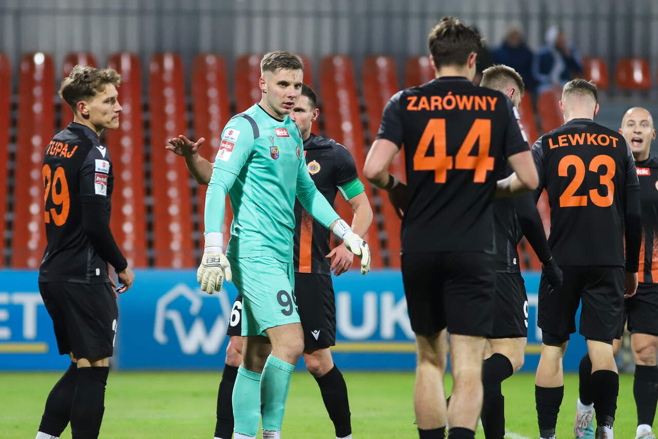 Było blisko Chrobry w od 17 minuty prowadził z liderem na jego terenie, ale seria nieszczęśliwych zdarzeń w drugiej połowie spowodowała, że to Termalica wygrywa spotkanie 3:2. 07-12-2024 07:28 autor: ŁJ Zaczęło się najgorzej, jak tylko mogło. Już w pierwszej minucie było 1:0. Mecz się tyle co rozpoczął, Chrobry był nawet na połowie rywala, ale akcja szybko przeniosła się na drugą, gdzie dokładnie w 36 sekundzie Kamil Zapolnik pokonał Dawida Arndta. Mógł przypomnieć się niedawny Chorzów, lecz to już nieco inny Chrobry. Pomarańczowo-Czarni nie spuścili głów i szybko odpowiedzieli. W 6 minucie nacisnęli przeciwnika na jego połowie i tym zmusili go do błędu. Zawodnicy Termaliki musieli wycofać futbolówkę do swojego bramkarza, co świetnie rozczytał jeden z tych naciskających - Mikołaj Lebedyński. Był o tę sekundę szybszy, przyblokował Adriana Chovana i trafił na 1:1. Po kolejnych kilku chwilach mieliśmy natomiast niezbity dowód, że „stary-dobry” Miki wrócił przez duże W. Chrobry wywalczył rzut rożny, skąd dośrodkował Patryk Mucha, a na gola mocną główką zamienił to Lebedyński. Przypomnijmy: to były dwa pierwsze trafienia cenionego napastnika w tym sezonie. Dwa, które pozwoliły głogowianom odwrócić losy tego pojedynku. Po tym w wyraźnym natarciu byli gospodarze. Mieli kilka groźnych okazji, jak nieznacznie niecelny strzał głową Kamila Zapolnika, ale głogowska obrona pozostała niepokonana i po 45 minutach Chrobry sprawiał niespodziankę, prowadząc w Niecieczy 2:1. Druga połowa to seria nieszczęśliwych zdarzeń. W 49 minucie Kamil Zapolnik śladem Mikołaja Lebedyńskiego wstrzelił się po raz drugi, zresztą też głową, i na stadionie w Niecieczy znów mieliśmy remis. Po kolejnych kilku minutach boisko z kontuzją musiał opuścić Szymon Bartlewicz, a po nim, w 58 minucie, ukarany drugą żółtą kartką Szymon Lewkot. Przez ponad dwa kwadranse Chrobry musiał sobie radzić w dziesięciu. Miejscowi wykorzystali to już w 63 minucie, kiedy to na listę strzelców uderzeniem z linii pola karnego wpisał się Igor Strzałek. Termalica miała jeszcze kolejne okazje. W dwóch piłka odbijała się od poprzeczki - po próbie Macieja Ambrosiewicza oraz później po akcji Morgana Fassbendera i interwencji na linii Alberta Zarównego. Do momentu końcowego gwizdka wynik jednak nie uległ już zmianie. Choć… w doliczonym czasie ze stałego fragmentu z narożnika wrzucał Dawid Hanc, a po tym i odbitej przez zawodnika rywali piłki na samej linii szczęśliwie chwycił ją Adrian Chovan. To mógł być gol. Punkty zostały niestety na stadionie niecieczan. Chrobry może żałować, bo choć był skazywany na porażkę, wykazał się potencjałem na znacznie lepszy wynik. Ten potencjał pozostanie pokazać w kolejnych meczach, ale te dopiero w 2025 roku. Wiosenna część rozgrywek Betclic 1 Ligi ruszy w lutym. fot. 400mm.pl