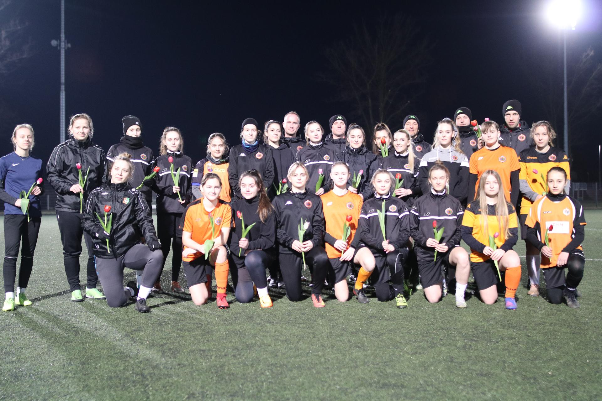 Trening piłkarek z kadrą pierwszej drużyny Na zaproszenie trenera kobiecej drużyny Chrobrego Tomasza Gąsieckiego, cała kadra szkoleniowa pierwszoligowców: trenerzy Ivan Djurdjević, Maciej Stachowiak, Mariusz Bołdyn i Maciej Idczak poprowadziła środowy trening piłkarek. Zajęcia w tak wyjątkowej formie organizowano już w przeszłości, więc można uznać je za klubową tradycję z okazji Dnia Kobiet. 10-03-2022 08:00 autor: AM Na zaproszenie trenera kobiecej drużyny Chrobrego Tomasza Gąsieckiego, cała kadra szkoleniowa pierwszoligowców: trenerzy Ivan Djurdjević, Maciej Stachowiak, Mariusz Bołdyn i Maciej Idczak poprowadziła środowy trening piłkarek. Zajęcia w tak wyjątkowej formie organizowano już w przeszłości, więc można uznać je za klubową tradycję z okazji Dnia Kobiet. PRZEJDŹ DO GALERII ZDJĘĆ PRZEJDŹ DO GALERII ZDJĘĆ