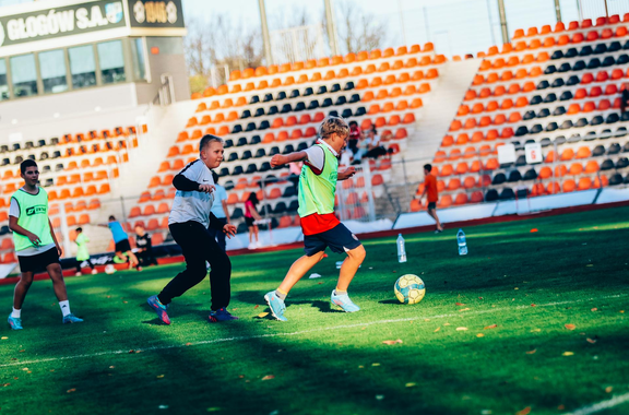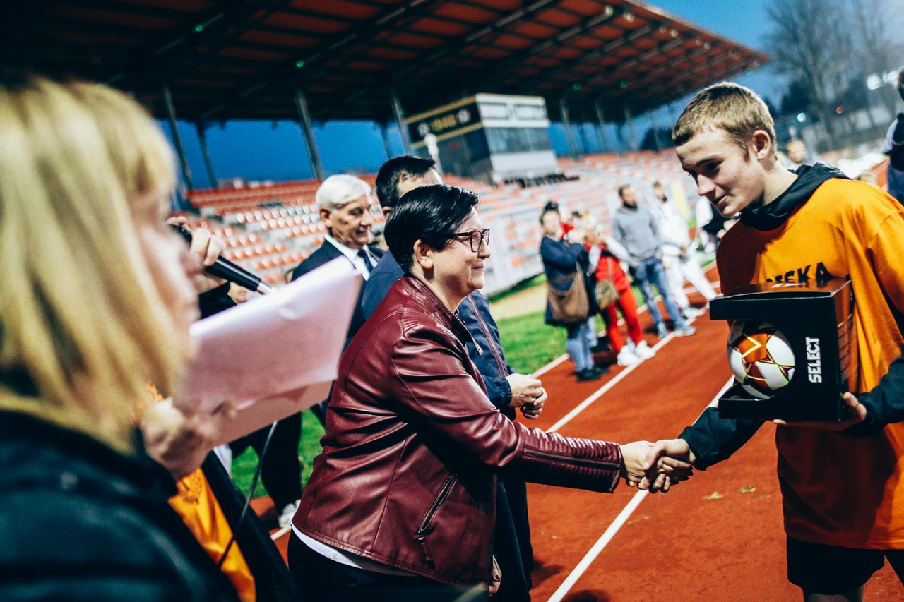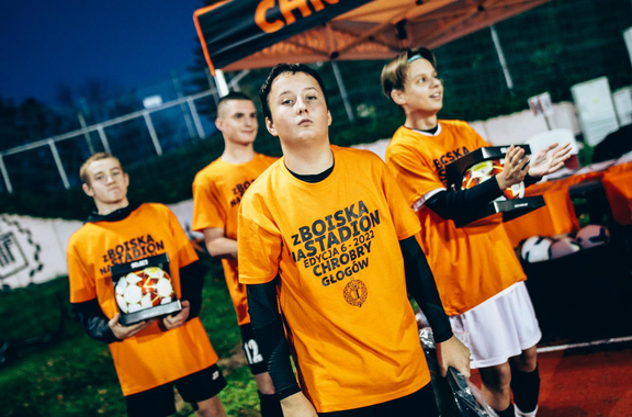 Po raz 6. z osiedlowego boiska przenieśli się na stadion Szóstą edycją turnieju Z Boiska Na Stadion podsumowaliśmy kończące się zajęcia Trenera Osiedlowego. Setka dzieci i młodzieży zagrała tam, gdzie pierwszoligowy Chrobry. 27-10-2022 08:35 autor: ŁJ Tylko do końca października na ośmiu przyszkolnych boiskach potrwają bezpłatne zajęcia sportowe w ramach projektu Trener Osiedlowy. Na kilka dni przed ostatnim w tym roku gwizdkiem uczestników zaprosiliśmy na stadion Chrobrego, na którym odbyła się szósta edycja piłkarskiego turnieju Z Boiska Na Stadion. W obu kategoriach triumfowali zawodnicy z boiska przy SP 7 trener Joanny Marszałek. Nagradzaliśmy jednak nie tylko zwycięzców, bo tradycyjnie wszyscy z rąk prezydenta Głogowa Rafaela Rokaszewicza i dyrektora Chrobrego Zbigniewa Prejsa otrzymali klubowe upominki. Mamy nadzieję, że w najbliższych miesiącach będą w nich widoczni na ulicach miasta. W tegorocznej edycji nasi trenerzy prowadzą zajęcia o charakterze sportowo-rekreacyjnym przez siedem miesięcy. W ramach projektu nie zabrakło wyjść na ligowe mecze Chrobrego Głogów czy na baseny. Przez trzy miesiące organizowaliśmy rozgrywki piłkarskiej Ligi Osiedlowej dla – jak sama nazwa wskazuje – osiedlowych zespołów, a zwycięzców w nagrodę zabraliśmy do Warszawy na mecz reprezentacji Polski. Turniej Z Boiska Na Stadion był zwieńczeniem wszelkich dotychczasowych aktywności Trenera Osiedlowego 2022. Prowadzony przez Chrobrego projekt Trener Osiedlowy jest finansowany ze środków Gminy Miejskiej Głogów.