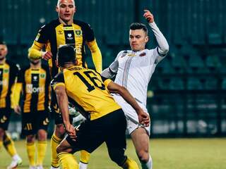 Wartościowy punkt. Defensywa wciąż żelazna Chrobry nadal niepokonany w tegorocznych występach i wciąż bez straty gola. Na zakończenie 23 kolejki Fortuna 1 Ligi Pomarańczowo-Czarni zremisowali z GKS-em Katowice 0:0 i dopisują do swojego konta kolejny wartościowy punkt. 14-03-2022 08:33 autor: ŁJ Chrobry nadal niepokonany w tegorocznych występach i wciąż bez straty gola. Na zakończenie 23 kolejki Fortuna 1 Ligi Pomarańczowo-Czarni zremisowali z GKS-em Katowice 0:0 i dopisują do swojego konta kolejny wartościowy punkt. Chrobry nie miał wymarzonego startu, przynajmniej personalnie. Już w pierwszej akcji gospodarzy, tuż po rozpoczęciu gry, zawrzało i choć GKS nie poszedł dalej z tym odważniejszym startem, w 12 minucie w głogowskich szeregach musiała nastąpić zmiana. Boisko opuścił kontuzjowany Michał Ilków-Gołąb, a zastąpił go Paweł Tupaj. Chrobry jednak drążył. W 20 minucie strzał Dominika Piły z ostrzejszego kąta obronił golkiper GKS-u. Później niecelnie z kilkunastu metrów przymierzył Mateusz Machaj, a po groźnym wjeździe w pole karne Michała Rzuchowskiego nikt nie zdołał zamknąć posłanej przez niego wzdłuż bramki futbolówki. Pierwsza połowa na remis ze wskazaniem na Chrobrego. Po zmianie stron głogowianie przycisnęli i mieli z czego strzelić. W 64 minucie dobrym podaniem Mateusza Bochnaka uruchomił Mateusz Machaj, ale piłkę po strzale bocznego pomocnika Chrobrego odbił na rzut rożny Dawid Kudła. Tylko rzut rożny głogowska drużyna miała też po świetnej sytuacji z 88 minuty, gdy po dograniu Dominika Dziąbka strzelano na raty. Uderzający jako pierwszy Mateusz Bochnak po raz kolejny złapał się za głowę… Fakt, że w międzyczasie bardzo groźnie po rzucie wolnym głową uderzał Arkadiusz Jędrych, co padło łupem dobrze ustawionego Rafała Leszczyńskiego, więc mimo niedosytu, drużyna zdawała się doceniać tę zdobycz. W kolejnym meczu, w sobotę 19 marca Chrobry zmierzy się z innym GKS-em, tym razem z Tychów. Początek o godz. 12.40 w Głogowie.