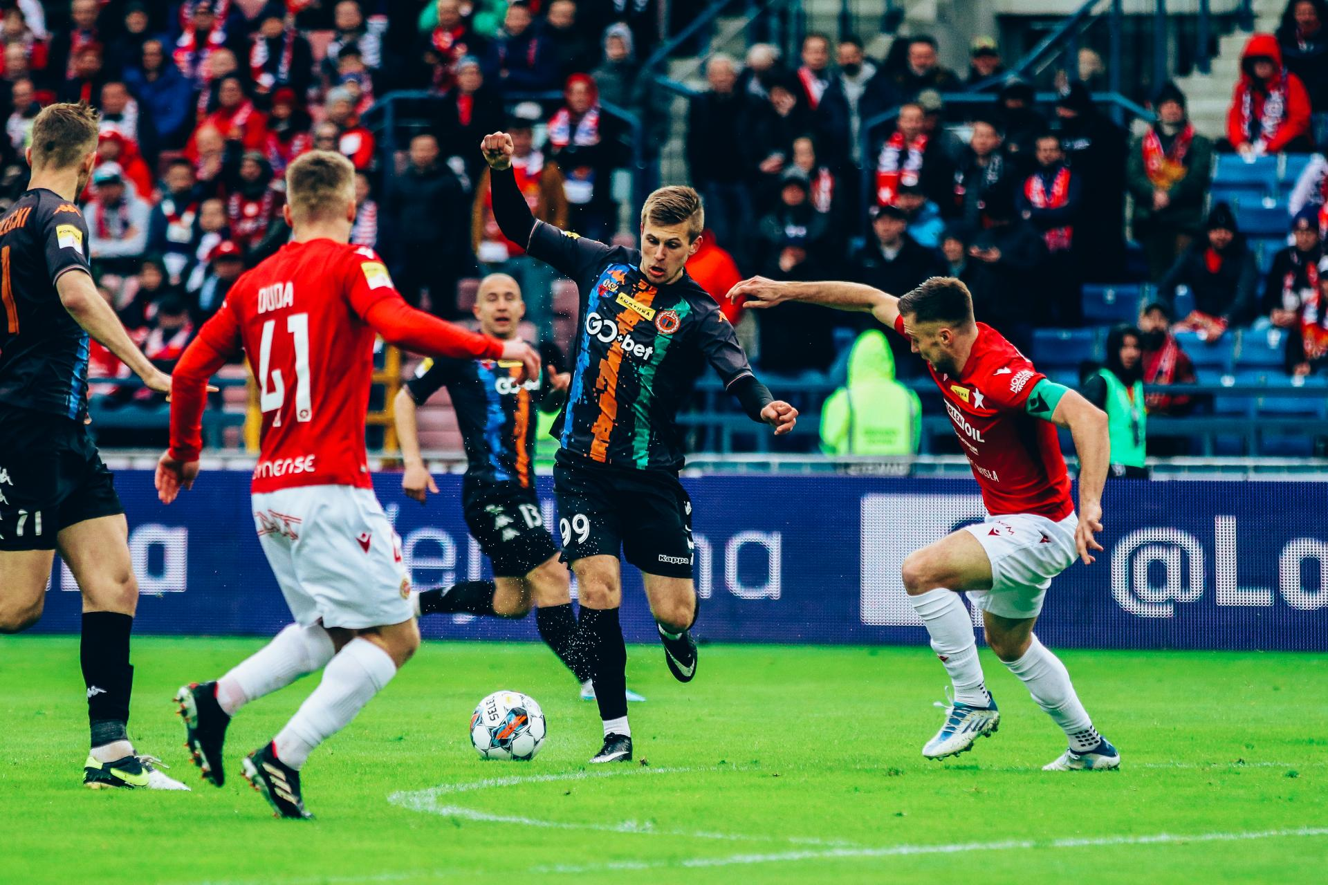 Wisła Kraków - Chrobry Głogów 4:1 01-04-2023 07:15 autor: ŁJ W rozegranym w Krakowie meczu 25 kolejki Fortuna 1 Ligi Chrobry przegrał z Wisłą Kraków 1:4. WISŁA KRAKÓW – CHROBRY GŁOGÓW 4:1 (3:1) 1:0 Villar 16 2:0 Fernandez 22 2:1 Wolsztyński 39 3:1 Fernandez 45 4:1 Rodado 77 WISŁA: Biegański – Tachi, Moltenis, Rodado (82 Benito), Fernandez (87 Szywacz), Villar (82 Żyro), Jaroch, Łasicki, Junca, Mula (82 Młyński), Duda (76 Igbekeme). CHROBRY: Węglarz – Kuzdra, Michalec, Praznovsky, Bogusz, Kolenc, Mucha, Wolsztyński (84 Zarówny), Steblecki (75 Wojtyra), Górski J. (46 Hanc), Jóźwiak (58 Bilonoh (84 Ozimek)). ŻÓŁTE KARTKI: Kolenc, Górski, Mucha, Steblecki, Bogusz. CZERWONE KARTKI: SĘDZIA: Karol Arys (Szczecin). WIDZÓW: 9439.
