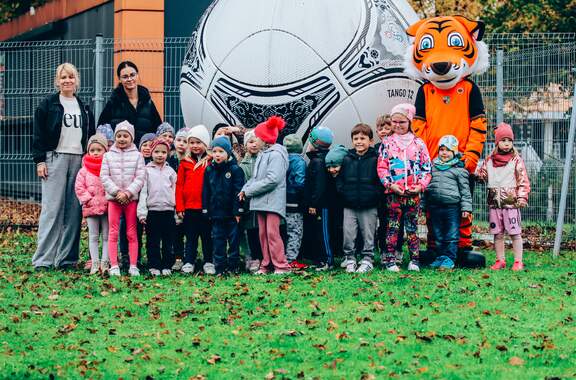 W środę gościliśmy liczną grupę przedszkolaków z Grębocic! Dzieci wzięły udział we wspólnym treningu z trenerem Akademii Pawłem Marszałkiem oraz zwiedzały stadion.