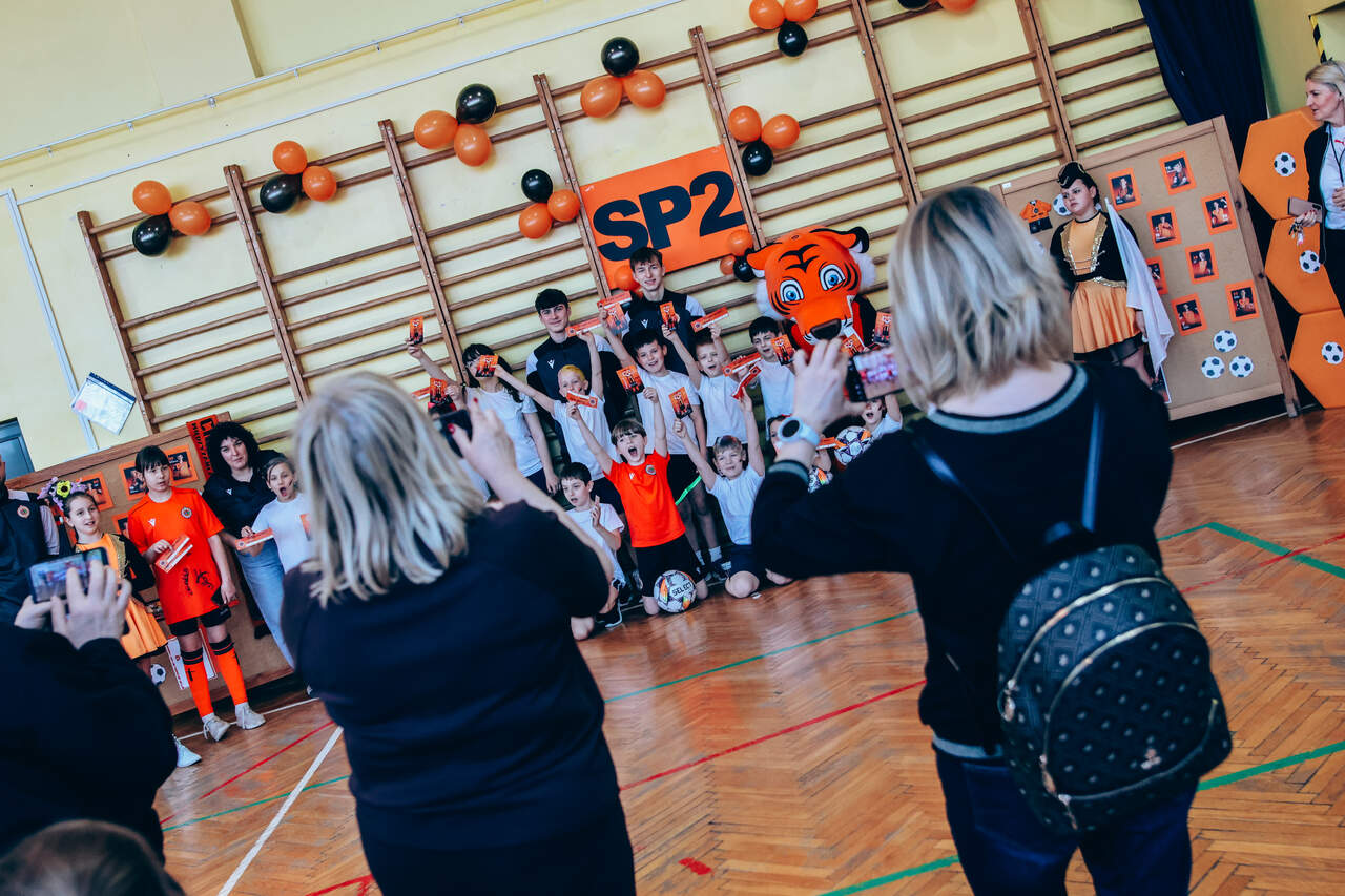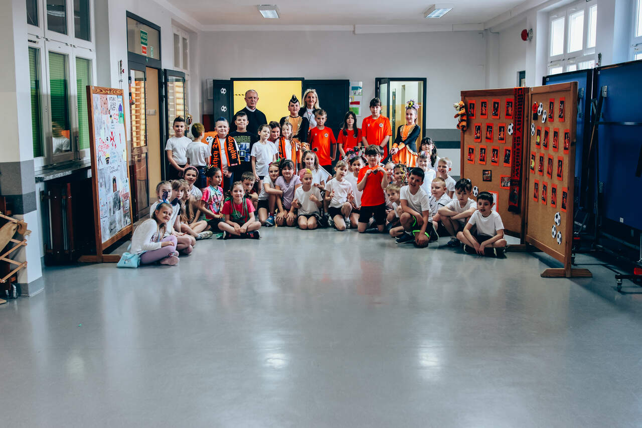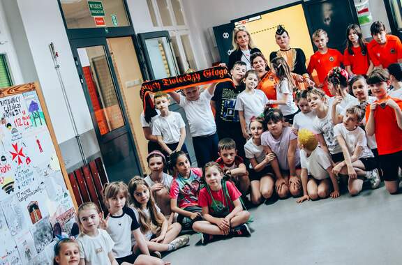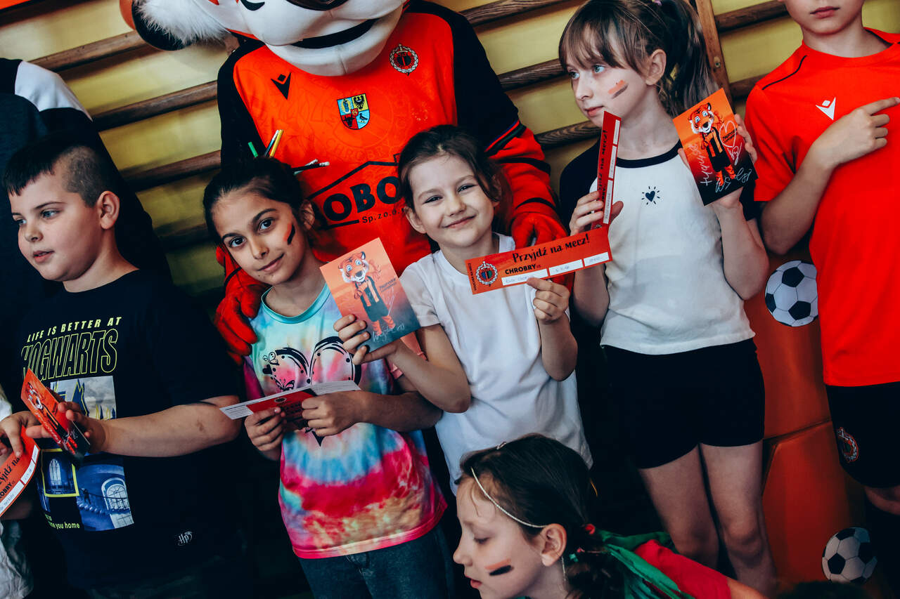 Świetne przyjęcie Chrobrego w "dwójce" Szkoła Podstawowa nr 2 w Głogowie przygotowała wyjątkowo ciepłe i pełne entuzjazmu powitanie dla Chrobrego. Pomarańczowo-czarne barwy w szkole reprezentowali trener Paweł Marszałek, klubowa maskotka oraz dwóch młodych piłkarzy – Wiktor Łaszyński i Fabian Wojtal. Zobaczcie zdjęcia z tego wydarzenia! 18-03-2026 11:54 autor: ŁJ