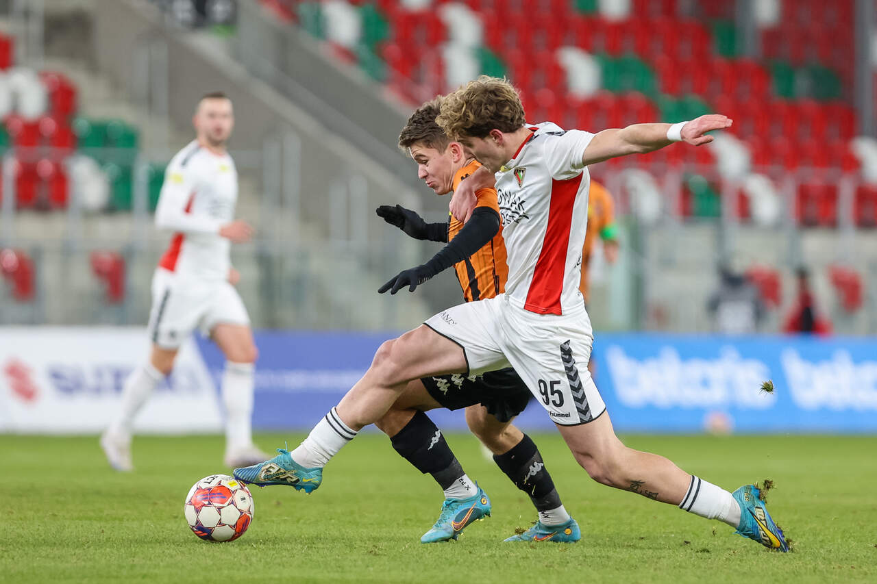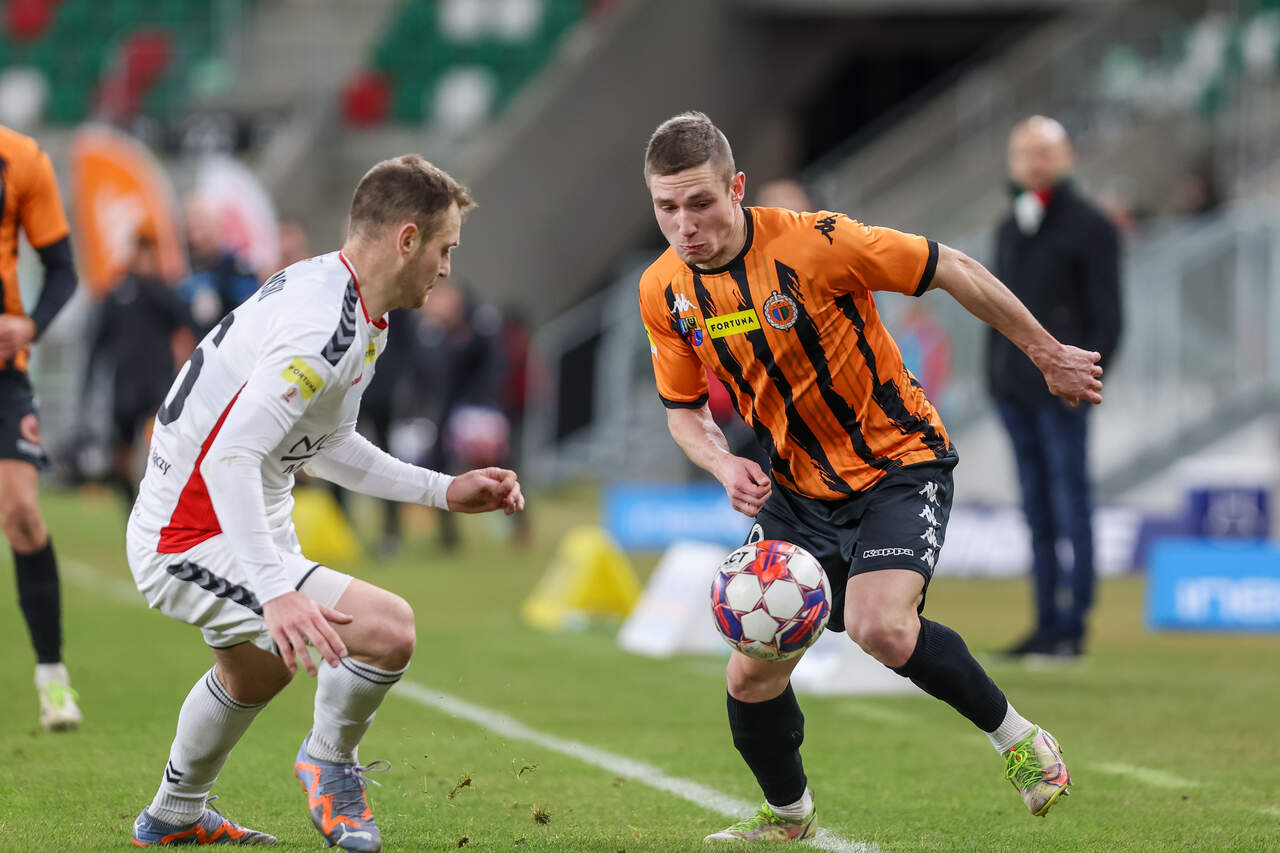 Bardzo, ale to bardzo ważne zwycięstwo! Ależ to jest bardzo ważne zwycięstwo! Chrobry pokonując Zagłębie Sosnowiec 2:1 wygrywa kolejny w tej rundzie mecz „za sześć” i ponownie oddala się od strefy spadkowej. 19-12-2023 06:27 autor: ŁJ Przed tym meczem trener Piotr Plewnia miał sporo przemyśleń, bo sporo problemów kadrowych. Chrobry pojechał do Sosnowca w najtrudniejszej pod tym względem sytuacji w sezonie. Za kartki musieli pauzować Mavroudis Bougaidis, Patryk Mucha i Szymon Bartlewicz, a lista kontuzjowanych bądź chorujących była jeszcze dłuższa (Jakub Kuzdra, Patryk Plewka, Mateusz Machaj, Rafał Wolsztyński, Kamil Wojtyra i Paweł Tupaj). To stworzyło szansę przed kolejnymi młodzieżowcami, bo na Zagłębie pojechali też Adrian Tworzydło z Krzysztofem Janiszewskim i Maciejem Maćkowiakiem. Już w pierwszych minutach niecelnie główkował Mikołaj Lebedyński, ale większy napór był ze strony gospodarzy. W 14 minucie groźnie strzelał Maksymilian Rozwandowicz, lecz został skutecznie przyblokowany. Chrobry, choć bardziej widoczny w defensywie, potrafił odpowiedzieć i wypracować jeszcze lepszą okazję. W 19 minucie przed taką stanął Mateusz Ozimek, po którego uderzeniu piłka przeszła obok słupka. I tak ta połowa minęła. Chrobry miał jeszcze rzut wolny z niecelną próbą Bartosza Biela w 40 minucie, więcej tych strzałów było po stronie sosnowiczan, ale co za tym idzie - więcej niecelnych (tylko raz, w 45 minucie, Dean Guezen przymierzył w światło bramki, z czym Damian Węglarz nie miał kłopotów) - i w efekcie 0:0 po 45 minutach. Trzeba oddać Chrobremu, że skupiając się na obronie nie po raz pierwszy w tym sezonie robił to bardzo dobrze. Do skutecznej obrony trzeba było dorzucić coś z przodu i Chrobry po zmianie stron zaatakował z impetem. W 50 minucie rzut wolny w okolicy narożnika pola karnego wywalczył Mateusz Ozimek i bezpośrednio z tego punktu pokonał bramkarza Zagłębia Mateusza Kosa. 180 sekund później było już 0:2. W jednej akcji dwa razy piłkę wyłuskał Mateusz Ozimek, z prawej strony dograł na środek pola karnego do Mikołaja Lebedyńskiego, skąd piłka trafiła dalej do wolnego Dawida Hanca, który pewnie podwyższył prowadzenie Pomarańczowo-Czarnych. Zagłębie próbowało nadążyć. W 63 minucie po wrzutce z boku nogę dostawiał Tymoteusz Klupś, jednak naciskany przez Michała Michalca nie oddał czystego strzału i futbolówkę pewnie chwycił Damian Węglarz. Poza tym głogowianie opanowali boiskowe wydarzenia i nie dopuszczali do większych spięć pod swoją bramką. Do pewnego momentu. W 86 minucie kontaktowego gola zdobyli miejscowi, a konkretnie Marek Fabry. Zrobiło się więc bardzo gorąc, tym bardziej że po chwili Patryk Caliński trafił w słupek. Uff… Na szczęście Chrobry, jak się okazało, został wytrącony z tego defensywnego rytmu tylko na moment. Na więcej nie pozwolił. Dzięki temu cieszy się z bardzo, ale to bardzo cennego zwycięstwa. Chrobry kończy więc ten trudny rok - zwycięsko i z czteropunktową przewagą nad strefą spadkową, choć w pewnym momencie sam będąc na 18 pozycji tracił tych kilka punktów. Zdołał odwrócić swoje losy i z większym spokojem może udać się na zimową przerwę. Kolejny mecz w lutym. Fot. 400mm.pl