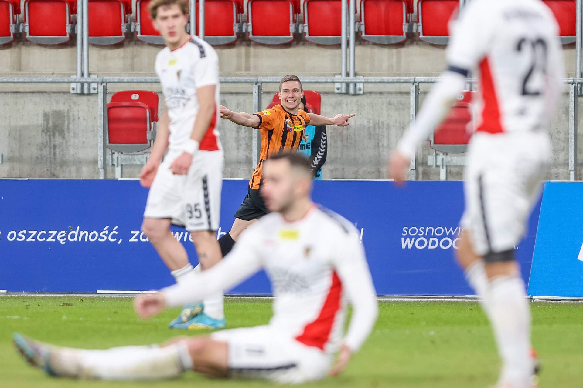 Zagłębie Sosnowiec - Chrobry Głogów 1:2 19-12-2023 06:26 autor: ŁJ W zaległym meczu 17 kolejki Fortuna 1 Ligi Chrobry Głogów po dwóch bramkach zdobytych w drugiej połowie pokonał Zagłębie Sosnowiec 2:1. ZAGŁĘBIE SOSNOWIEC - CHROBRY GŁOGÓW 1:2 (1:2) 0:1 Ozimek 50 0:2 Hanc 53 1:2 Fabry 86 ZAGŁĘBIE: Kos - Caliński, Dalic (53 Camara), Jończy, Ryndak (81 Ziemann), Rozwandowicz, Guezen (58 Biliński), Klupś (81 Bębenek), Karwot, Zielonka (58 Uchnast), Fabry. CHROBRY: Węglarz - Zarówny, Michalec, Malczuk, Tabiś, Mandrysz, Biel (69 Paz), Hanc (90 Górski), Bogusz (82 Pieczarka), Ozimek (90 Stuglis), Lebedyński. ŻÓŁTE KARTKI: Jończy, Klupś, Fabry, Uchnast - Ozimek, Hanc. CZERWONE KARTKI: - SĘDZIA: Paweł Pskit (Łódź). WIDZÓW: 1436. Fot. 400mm.pl