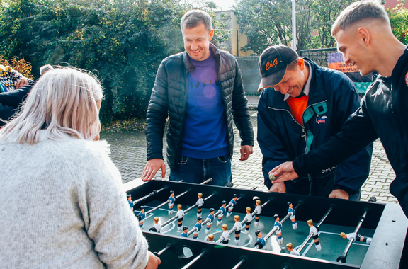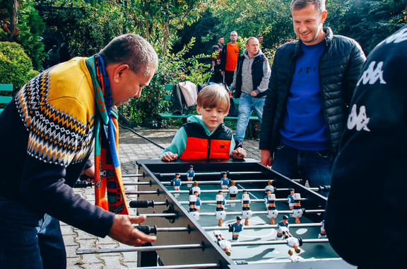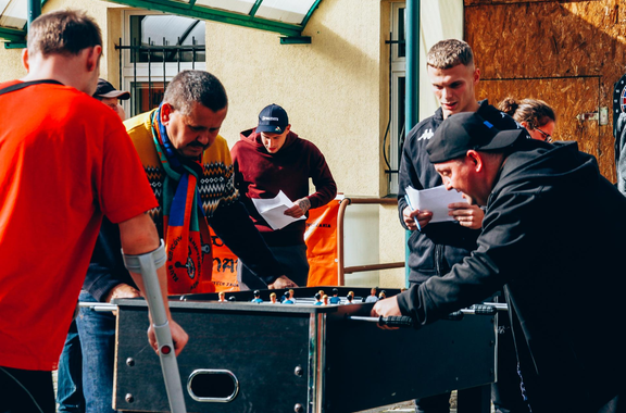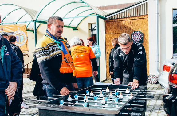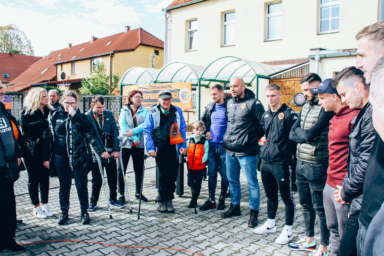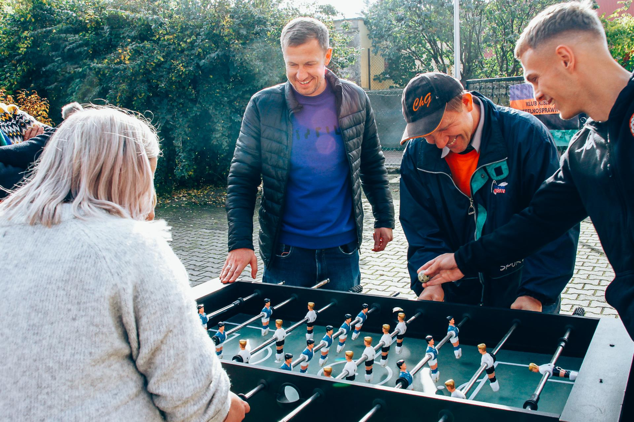 Zespół Chrobrego wziął udział w evencie Klubu Kibiców Niepełnosprawnych Piłkarze i sztab Chrobrego wzięli w sobotę udział w imprezie integracyjnej Klubu Kibiców Niepełnosprawnych. Dzięki temu znamy się lepiej! 18-10-2022 12:31 autor: AM Dzieli nas poziom sprawności, ale łączy Chrobry! Nie tylko przy okazji meczów, bo zawsze z entuzjazmem odpowiadamy inicjatywy naszego Klubu Kibiców Niepełnosprawnych poza stadionem. Tym razem spotkaliśmy się przy okazji integracyjnego eventu połączonego z rywalizacją w różnych konkurencjach pod hasłem "Olimpiada sportowa osób niepełnosprawnych". Takie inicjatywy powodują, że znamy się lepiej, a nie zawsze oczywiste problemy czy potrzeby osób niepełnosprawnych stają się bardziej zrozumiałe. Spotkanie było okazją nie tylko do dobrej zabawy podczas rozgrywek w piłkarzyki, boule czy darta, ale także do rozmów o stadionowych i organizacyjnych barierach z punktu widzenia osób niepełnosprawnych oraz o planach, które razem możemy realizować. Wydarzenie pokazało również, że KKN to wspólna sprawa wielu osób, firm czy instytucji. Jest to impreza, którą nasi kibice organizują cyklicznie od kilku lat. Idea integracji, która skupia przy nich sponsorów czy darczyńców, powoduje, że jest to liczne i wpływowe grono kibiców. Dzięki za zaproszenie i za to, że jesteście! Sponsorem nagród w olimpiadzie była Gmina Miejska Głogów, puchar ogólny dla wszystkich biorących udział ufundował wicestarosta Jeremi Hołownia, produkty spożywcze Społem Głogów, Krzysztof Fryczyński udostępnił miejsce na zrobienie zawodów - przy siedzibie Stowarzyszenia na Rzecz Integracji i Usamodzielnienia DOM w Głogowie, Parafia Najświętszej Maryi Panny udostępniła kuchnię do gotowania i termosy, natomiast warzywa do przygotowania posiłków przekazała pani Ewa Mazurkiewicz z pawilonu 25 przy Wałach Chrobrego.