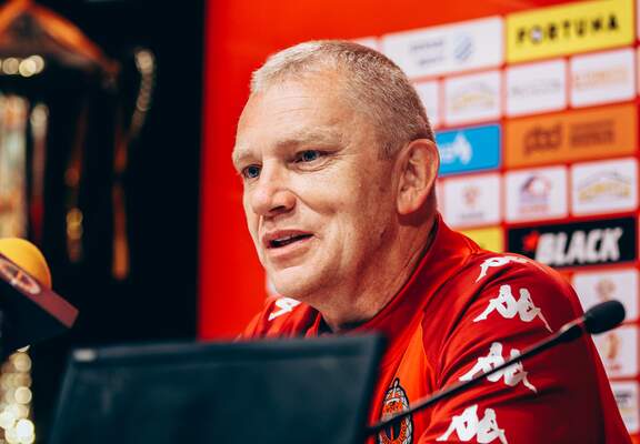 Trenerzy Piotr Plewnia i Marek Saganowski po meczu Chrobrego z Zagłębiem.
