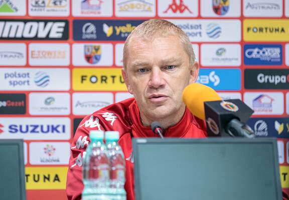 Trenerzy Piotr Plewnia i Wojciech Łobodziński po meczu w Głogowie.