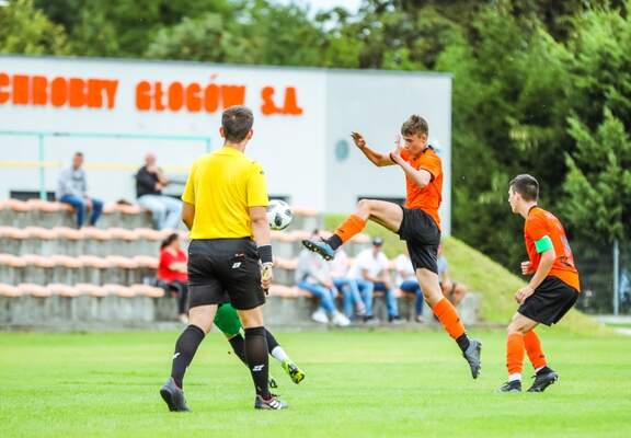 Rezerwy Chrobrego Głogów z wyjazdowym zwycięstwem w Koleje Dolnośląskie 4 Lidze. Pomarańczow...