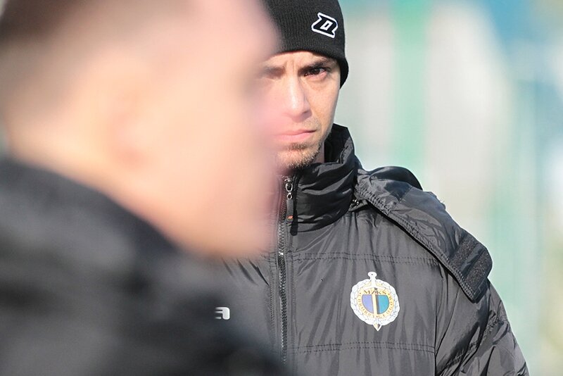 Trenerzy Łukasz Becella i Piotr Stokowiec po Chrobry - Pogoń.