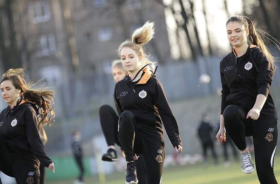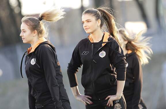 Dzień Kobiet tuż-tuż, dlatego piłkarze i trenerzy Chrobrego wpadli dziś na trening naszej dziewczęc1