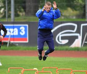 Trenerzy Łukasz Becella i Piotr Stokowiec po Chrobry - Pogoń.