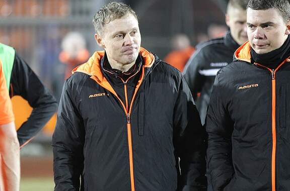 Trenerzy Łukasz Becella i Piotr Stokowiec po Chrobry - Pogoń.