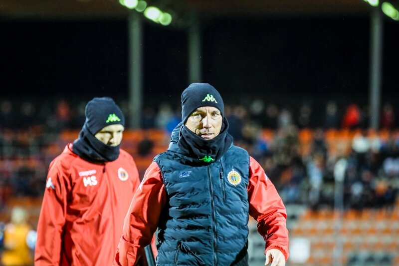 Trenerzy Łukasz Becella i Ante Šimundža po meczu we Wrocławiu.