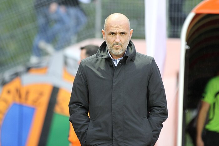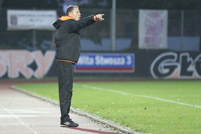 Trenerzy Łukasz Becella i Piotr Stokowiec po Chrobry - Pogoń.