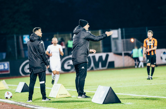 Trenerzy Łukasz Becella i Ante Šimundža po meczu we Wrocławiu.