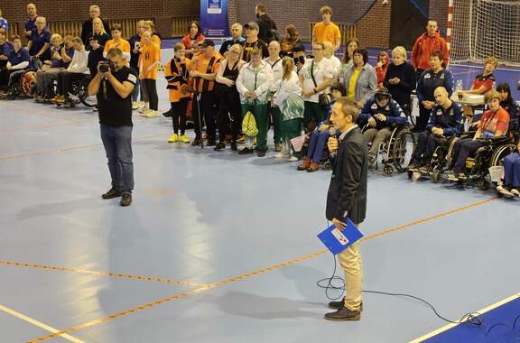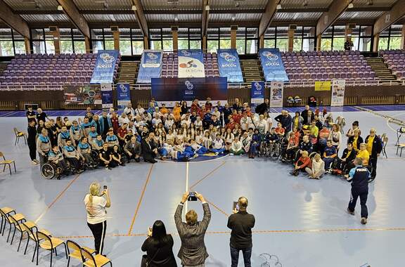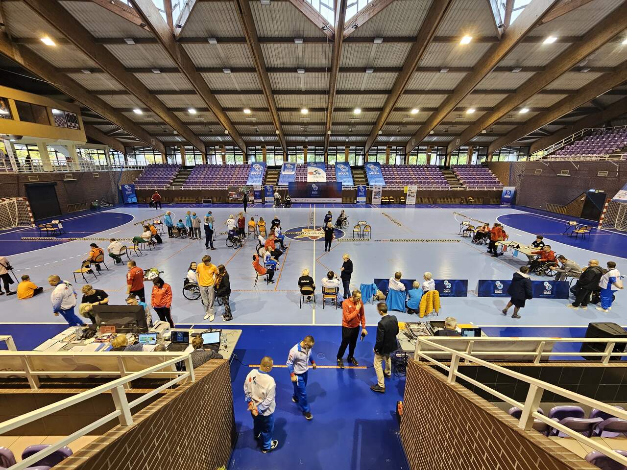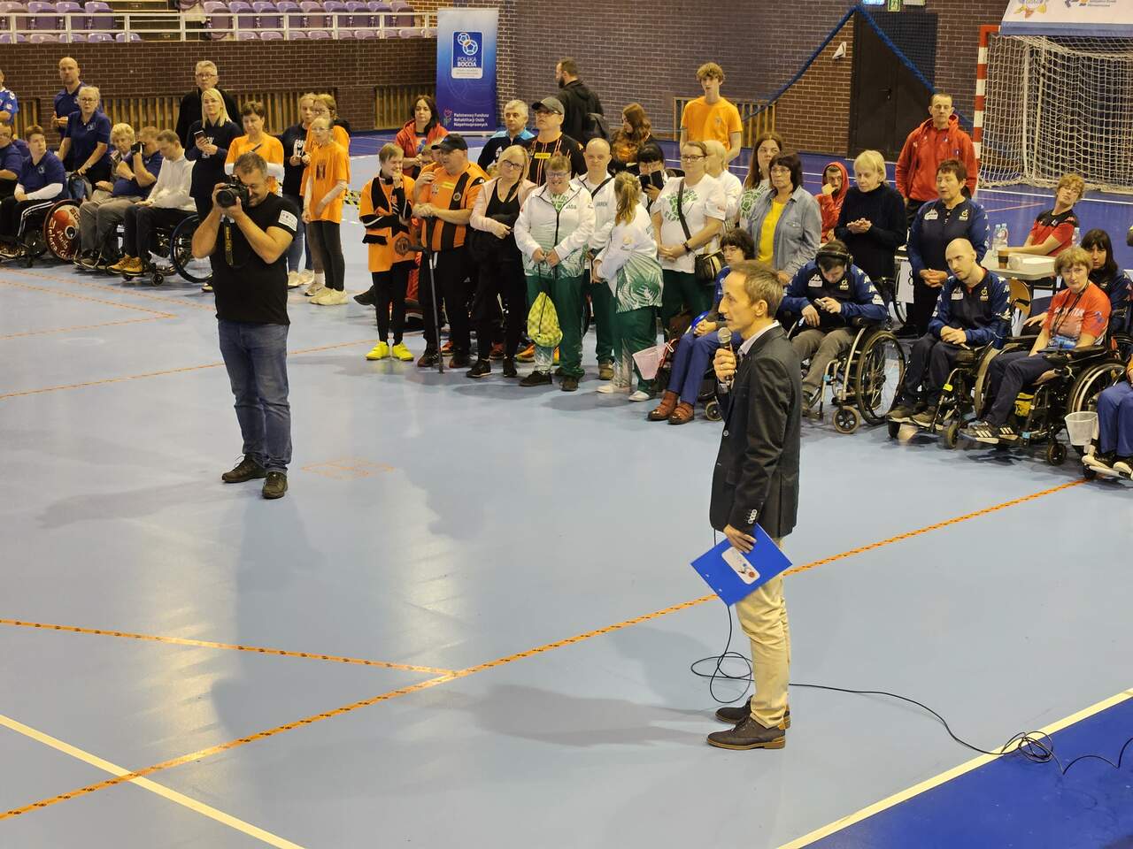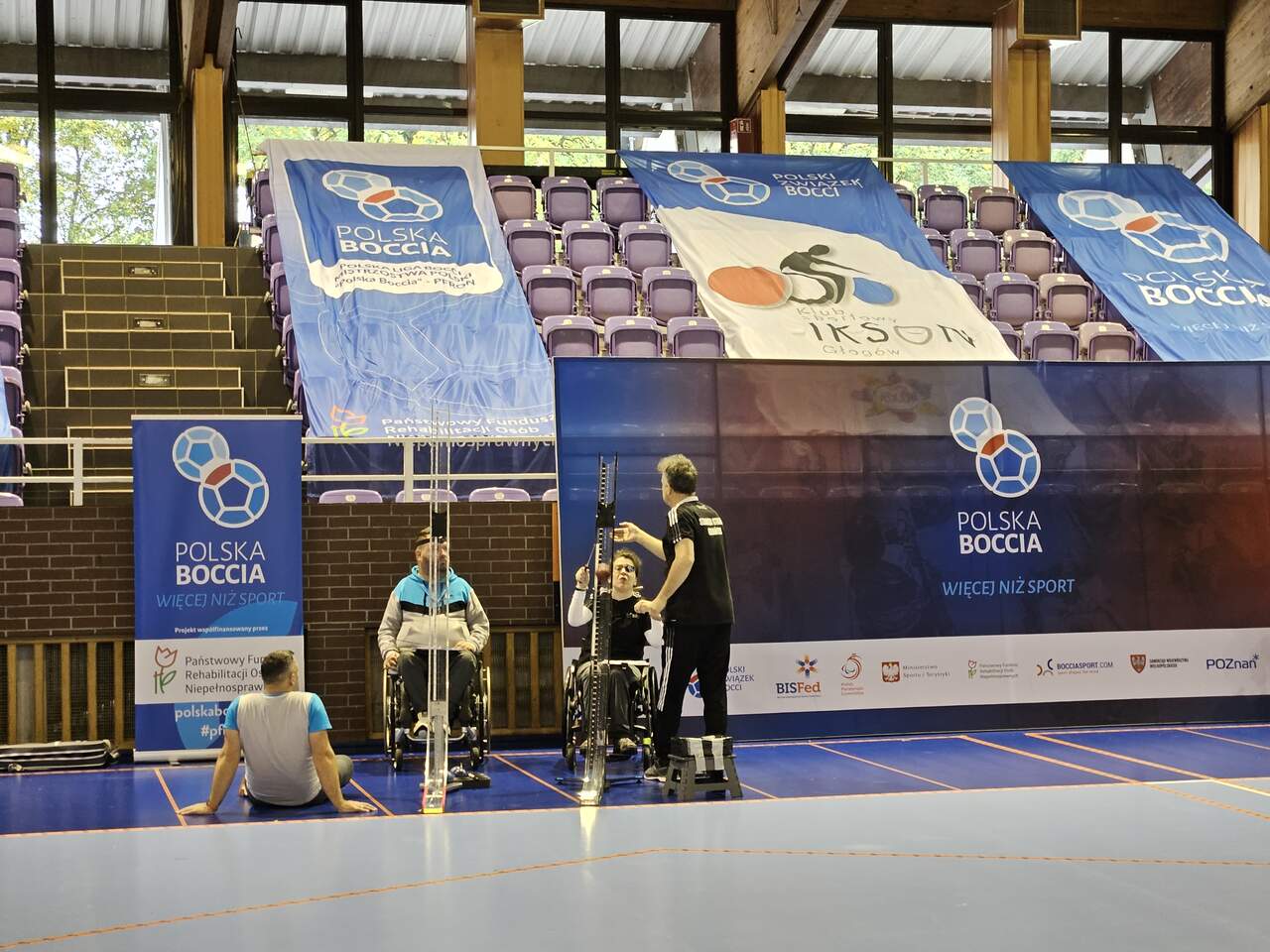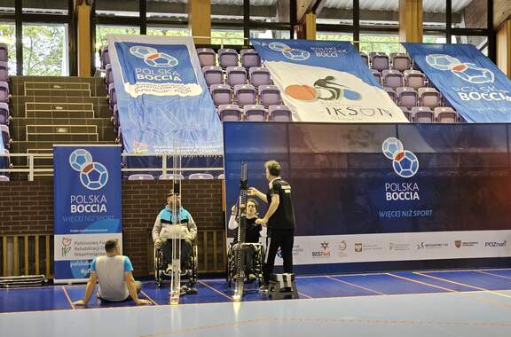 Polska Liga Bocci w Hali im. Matuszaka 27 i 28 października Hala Widowiskowo-Sportowa im. Matuszaka gościła zawody Polskiej Ligi Bocci. 30-10-2023 08:45 autor: MK / MK / zdjęcia: MK 27 i 28 października po raz 5 w historii Głogów był gospodarzem zawodów Polskiej Ligi Bocci. Udział wzięło 16 reprezentacji: Zrzeszenie "Start" w Bielsku Białej Stowarzyszenie SZANSA-START w Gdańsku Zrzeszenie "Start"w Kielcach Stowarzyszenie "Prometeus" w Konopiskach Centrum Sportu "Start" w Lublinie Klub Integracyjny w Nowym Sączu Klub Sportowy KSN w Warszawie Stowarzyszenie Sprawniejsi.pl we Włoszczowej Klub Sportowy AKSON w Zamościu Klub Sportowy "START" w Szczecinie Stowarzyszenie "Start" w Poznaniu Zrzeszenie "STAR T" w Zielonej Górze Stowarzyszenie Osób z Niepełnosprawnością Intelektualną Koło w Głogowie Fundacja AUTENTICON w Sławie Klub Kibiców Niepełnosprawnych w Głogowie Gospodarz Turnieju: Klub IKSON w Głogowie. Łącznie 140 zawodników wraz z osobami towarzyszącymi. Zawody otworzyli V-ce Prezydent Głogowa Wojciech Borecki, V-ce Starosta Głogowski Jeremi Hołownia, Przedstawiciel LSSE Marcin Patyk oraz s. Małgorzata Malska. Całość uświetnił występ Głogowskiej Rewii Graffiti.