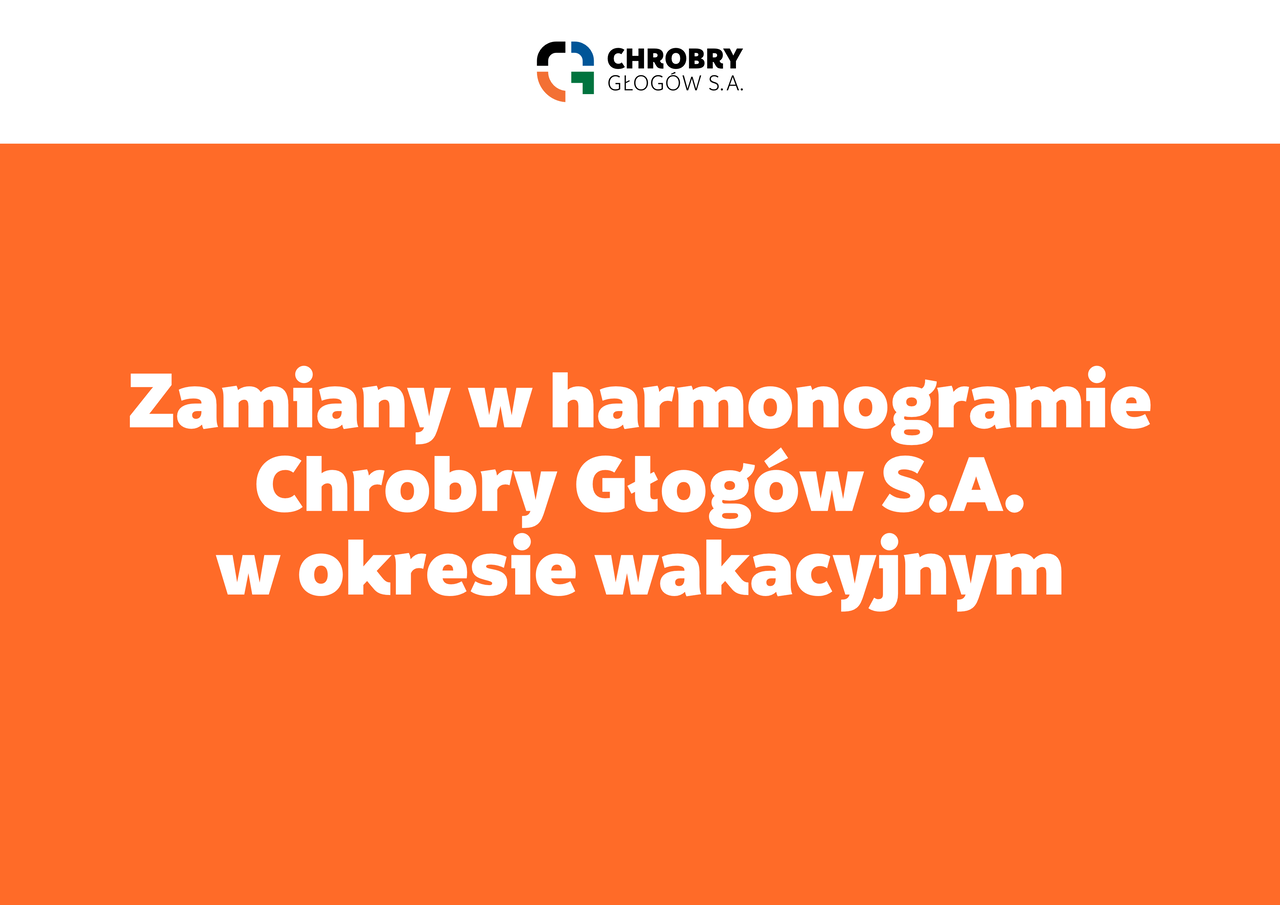 Zmiany w Harmonogramie funkcjonowania Obiektów Basenowych Chrobry Głogów S.A. Wakacje to czas, gdy zwalniamy tempo. Skorzystaj więc z udogodnień, jakie oferują Obiekty Basenowy Chrobry Głogów S.A. 10-06-2024 02:40 autor: Szanowni Klienci, pragniemy poinformować o nadchodzących zmianach w funkcjonowaniu naszych obiektów. Poniżej przedstawiamy szczegóły. Niedostępność basenów zewnętrznych: 15 czerwca baseny odkryte będą niedostępne dla klientów z powodu imprezy zamkniętej. Przepraszamy za wszelkie niedogodności. Aktualne godziny otwarcia basenów zewnętrznych: Do 14 czerwca baseny zewnętrzne są otwarte w godzinach od 12:00 do 20:00. Przerwa Technologiczna na pływalni Chrobry Głogów: Od 17 czerwca do 07 lipca, w związku z przerwą w dostawie ciepła dla miasta Głogowa, nastąpi przerwa technologiczna. Termin przerwy może ulec zmianie. Prosimy o śledzenie aktualności. W tym okresie zachęcamy do korzystania z naszych basenów zewnętrznych. Nowe Godziny Otwarcia Basenów Zewnętrznych: Od 16 czerwca baseny zewnętrzne będą otwarte codziennie w godzinach od 10:00 do 20:00. Dziękujemy za wyrozumiałość i zapraszamy do korzystania z naszych usług zgodnie z nowym harmonogramem. Zachęcamy także do śledzenia naszych profili na Facebook, by być na bieżąco ze wszystkimi aktualnościami.