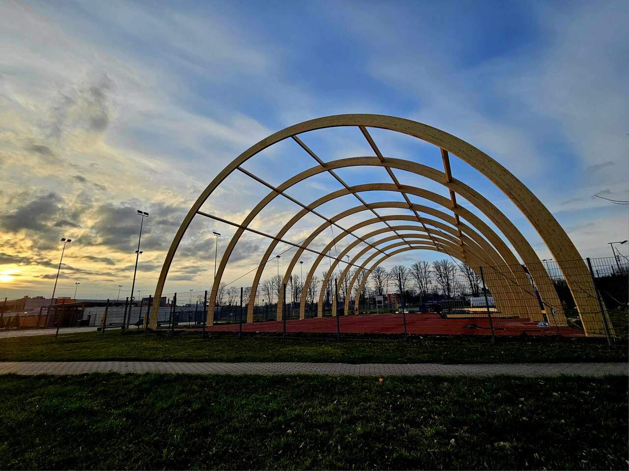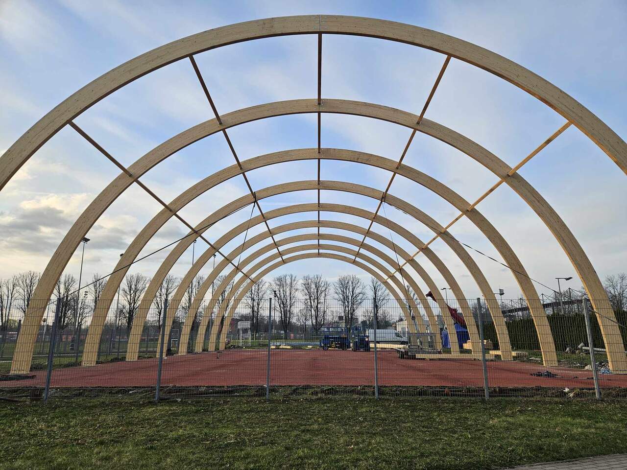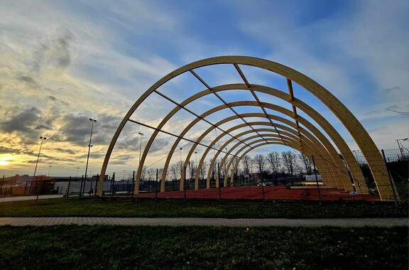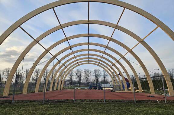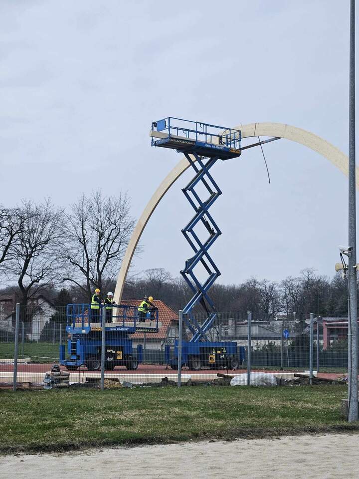 Drewniane dźwigary postawione! Zakończył się 1 etap budowy boiska zadaszonego. 15-03-2024 07:32 autor: MK / MK / zdjęcia: MK/Q Po 3 dniach od startu prac firma Quortex Sp. z o. o. z Gorzowa Wielkopolskiego wykonała pierwszy etap pracy przy "Budowa boiska sportowego o wymiarach 20x40 m z zadaszeniem łukowym z zewnętrzną podziemną instalacją zasilającą". Drewniane dźwigary są osadzone i czekają na nakrycie materiałem PVC. Więcej o inwestycji TUTAJ Zadanie realizowane jest w ramach programu Ministerstwa Sportu i Turystyki "Program Rozwoju Infrastruktury Piłkarskiej edycja 2022" Zadanie dofinansowane w ramach Programu Rozwoju Infrastruktury Piłkarskiej edycja 2022 organizowanego przez Ministerstwo Sportu i Turystyki.