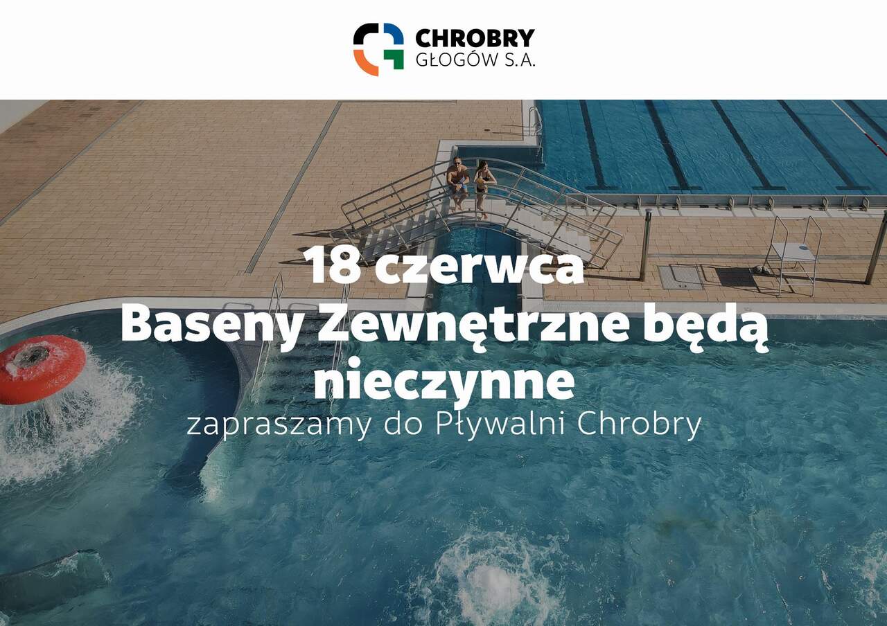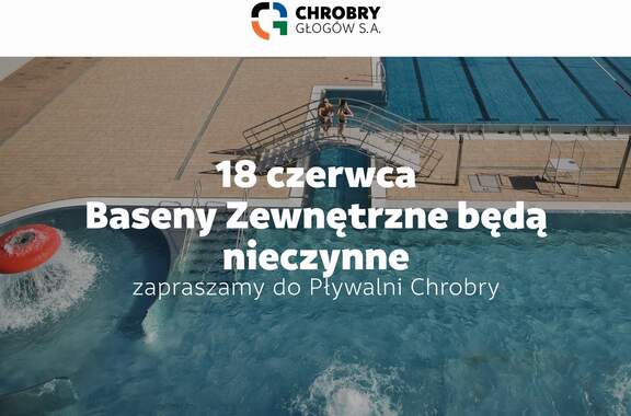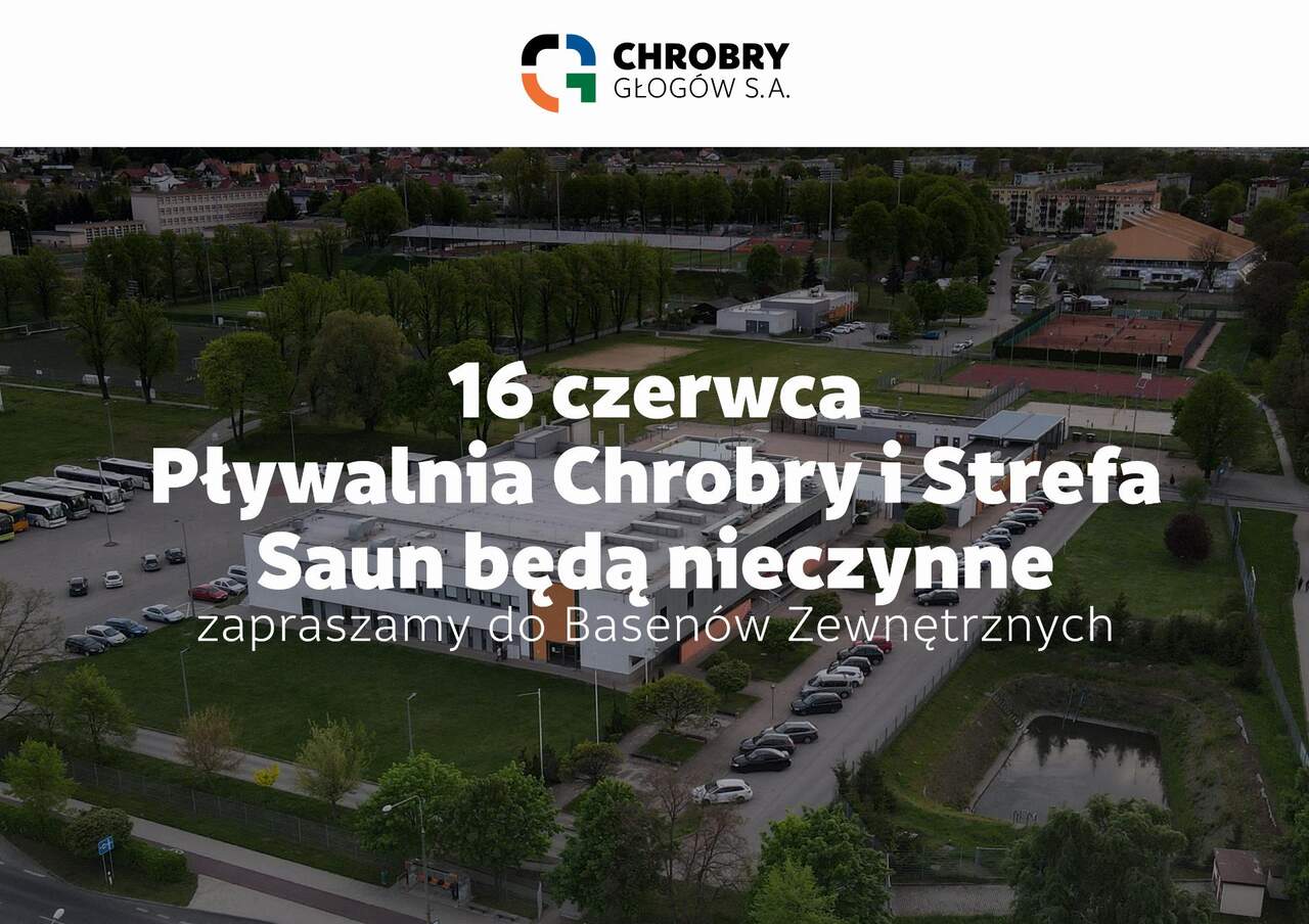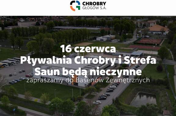 Harmonogram pracy Pływalni i Basenów Zewnętrznych 16 i 18 czerwca W weekend na boiskach, basenach i parkingu odbędzie się impreza zamknięta. Sprawdź, co się zmieni w harmonogramie pracy naszych obiektów. 13-06-2023 09:36 autor: MK / MB/RH / zdjęcia: MS W najbliższy weekend zmieniamy harmonogram pracy naszych obiektów. Na terenie boiska, basenów i parkingów odbędzie się impreza zamknięta. W dniu 16.06 nieczynna będzie Pływalnia Chrobry i Strefa Saun. W ten dzień zapraszamy na Baseny Zewnętrzne. W dniu 18.06 nieczynne będą Baseny Zewnętrzne. Dostępna będzie Pływalnia i Strefa Saun. Od 15 do 19.06 będą utrudnienia w dojeździe i korzystaniu z parkingu przed i za Pływalnią. 18.06 Parking z tyłu będzie wyłączony z użycia, tak samo jak duża część parkingu przez obiektem. Przepraszamy za wszystkie utrudnienia