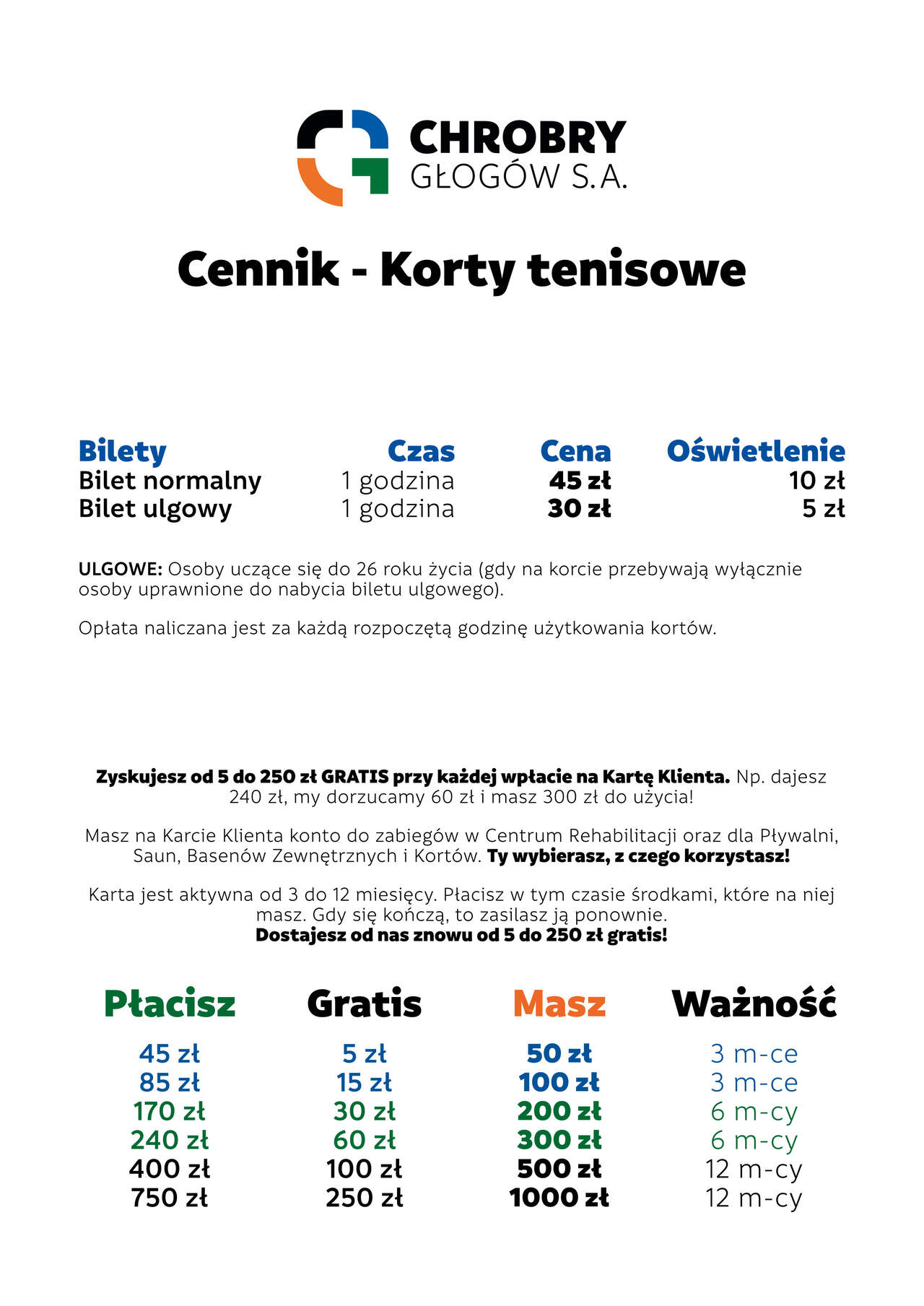 Otwieramy sezon tenisowy! Otwieramy sezon tenisowy na naszych kortach ceglastych! 30-04-2024 11:46 autor: MK / MK / zdjęcia: MS Otwieramy sezon tenisowy na kortach. 4 korty o nawierzchni ceglastej zostały przygotowane do gry przez profesjonalną firmę. Dzięki temu nawierzchnia jest równa i amortyzuje bieg. Korty mają oświetlenie. Są czynne od 8:00 do 23:00. Rezerwacja w portierni Hali im. Matuszaka - 76 835 55 76 Więcej o kortach tutaj