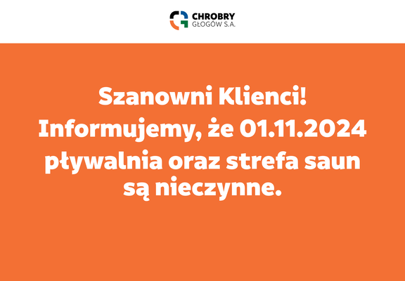 Już od jutra (04.10.24), na terenie Pływalni Chrobry Głogów !