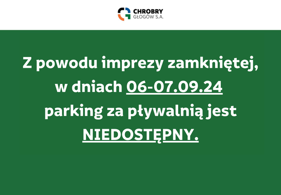 Z powodu imprezy zamkniętej parkingi niedostępne dla klientów pływalni