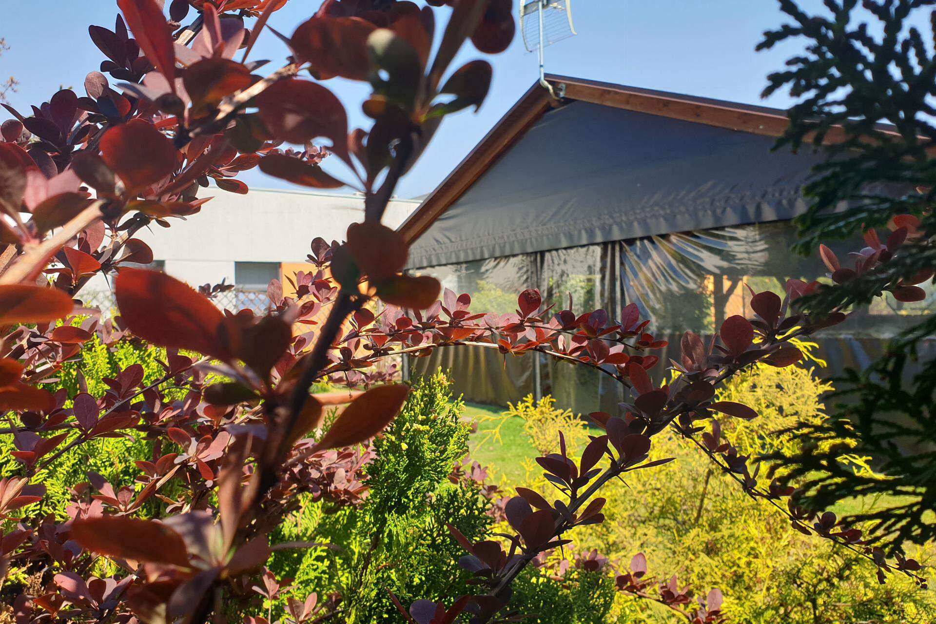 Tak jak Sportowy Ogródek Grillowy, który osłaniają głogi, byliny czy tuje.
