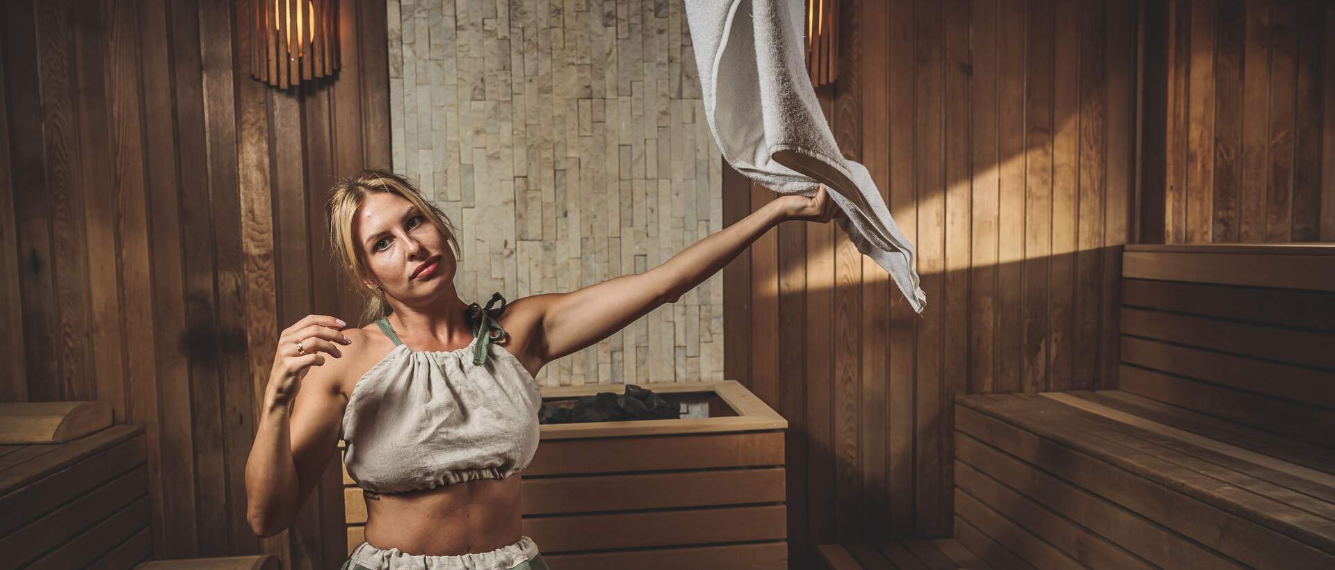 Sauna fińska — do 110*C, wilgotność do 15%, ceremonie saunowe Aufguss